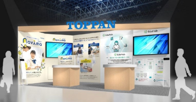 教材・コンテンツエリアに出展するTOPPANホールディングスブース(No.19-43)では、学校現場のDXを支えるプラットフォームやサービスを紹介。小中学校向けデジタル学習サービス「navima®」と学びをつなぐ教科書ポータル「EduHub®」を展示します。