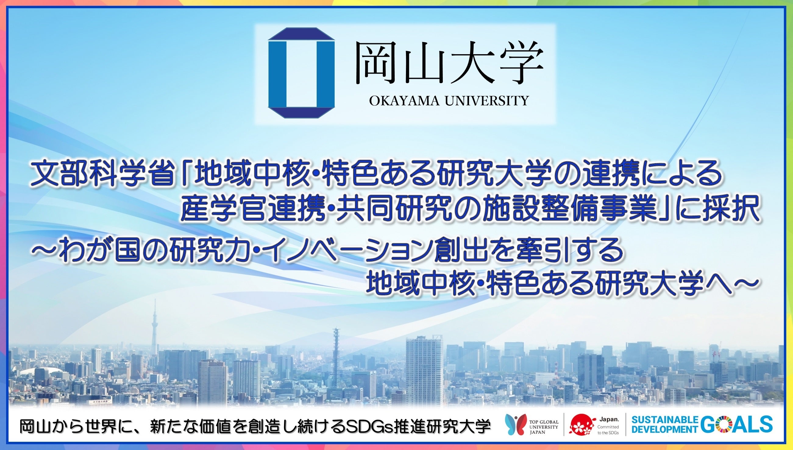 【岡山大学】文部科学省「地域中核・特色ある研究大学の連携による産学官連携・共同研究の施設整備事業」に採択 ~わが国の研究力・イノベーション創出を牽引する地域中核・特色ある研究大学へ~