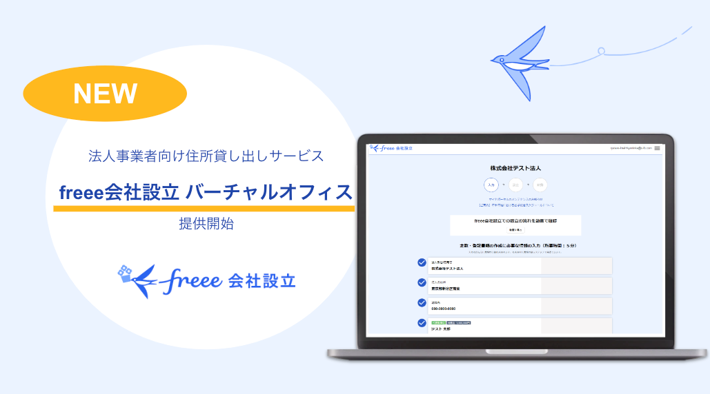 ・法人事業者向けの住所貸し出しサービス「freee会社設立 バーチャルオフィス」の提供を開始します