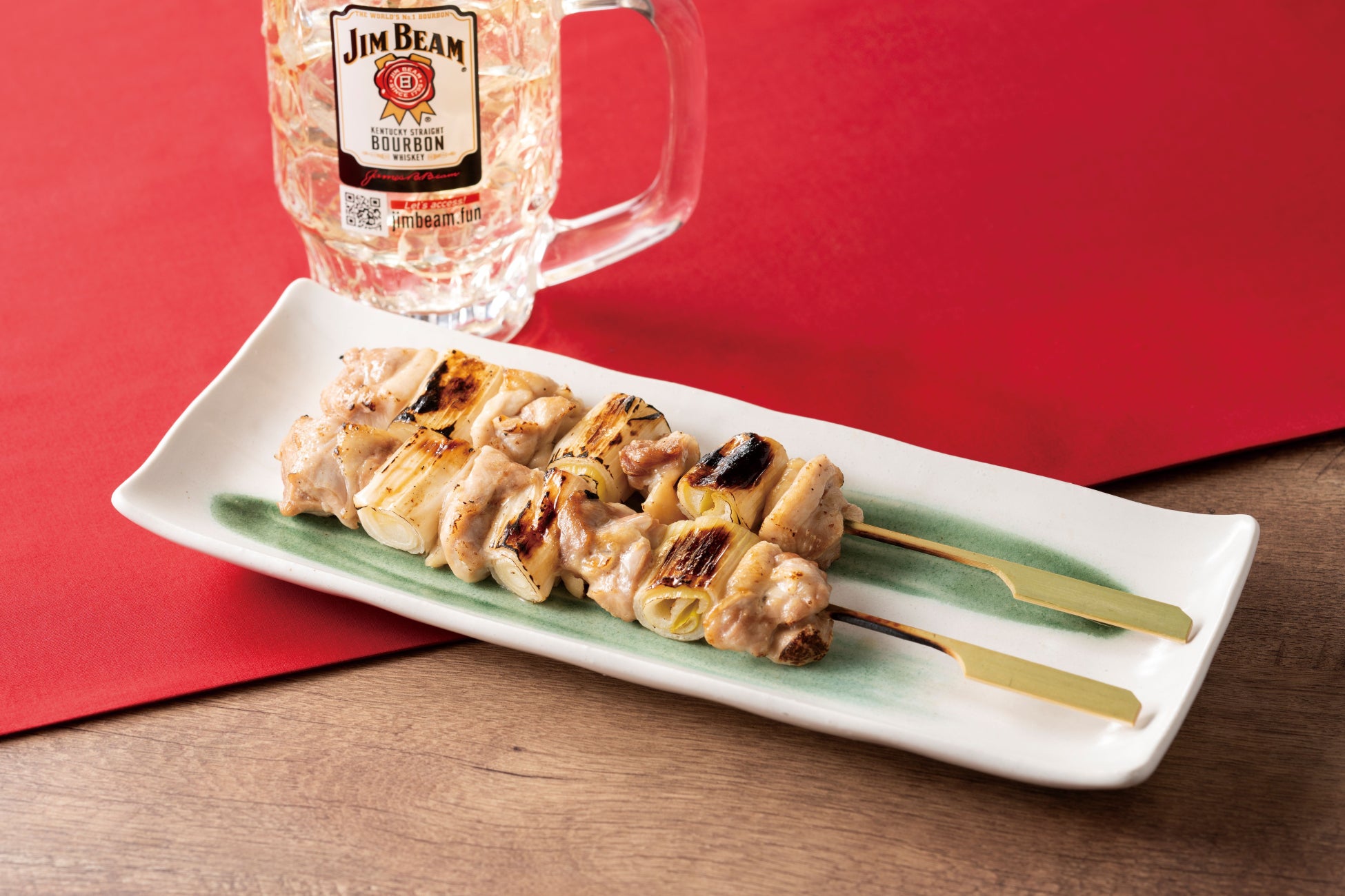 くわえて今回は東日本限定で24cmの大串に刺さった「清流若どりのジャンボねぎま串」をご用意しております。