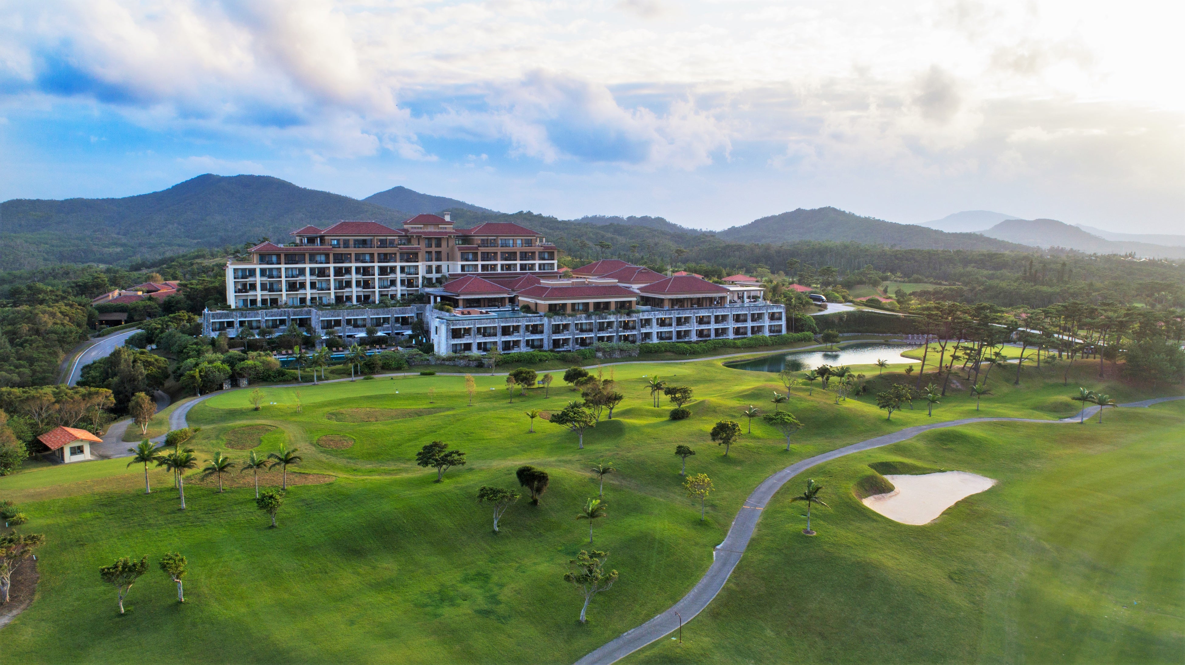 沖縄本島のほぼ中央、名護市喜瀬の自然豊かな高台に位置する「ザ・リッツ・カールトン沖縄」は、琉球のシンボルとなっている“首里城”の赤瓦と白い城壁、また古来より“聖地”とされ崇められてきた水の湧き出る場所をモチーフとしています。琉球での城とは、訪れる人を温かく迎え入れる場所の意味もあり、「城(グスク)」と呼ばれます。古くより礼を重んじ礼を守ってきた琉球の人々が大切にしてきたおもてなしの心「迎恩(ケイオン)」と、ザ・リッツ・カールトンの伝統的なサービス精神を具現化した「城(グスク)」で、お客様をお迎えいたします。