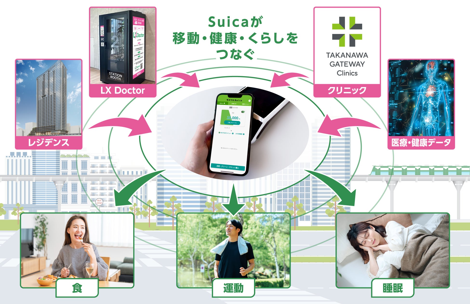 この取組みは、TAKANAWA GATEWAY CITYを起点としたヘルスケアサービスの拡大とともに、お客さまの生活に徹底的に根差したSuicaを創り上げていく「Suica Renaissance」の一環として推進します。