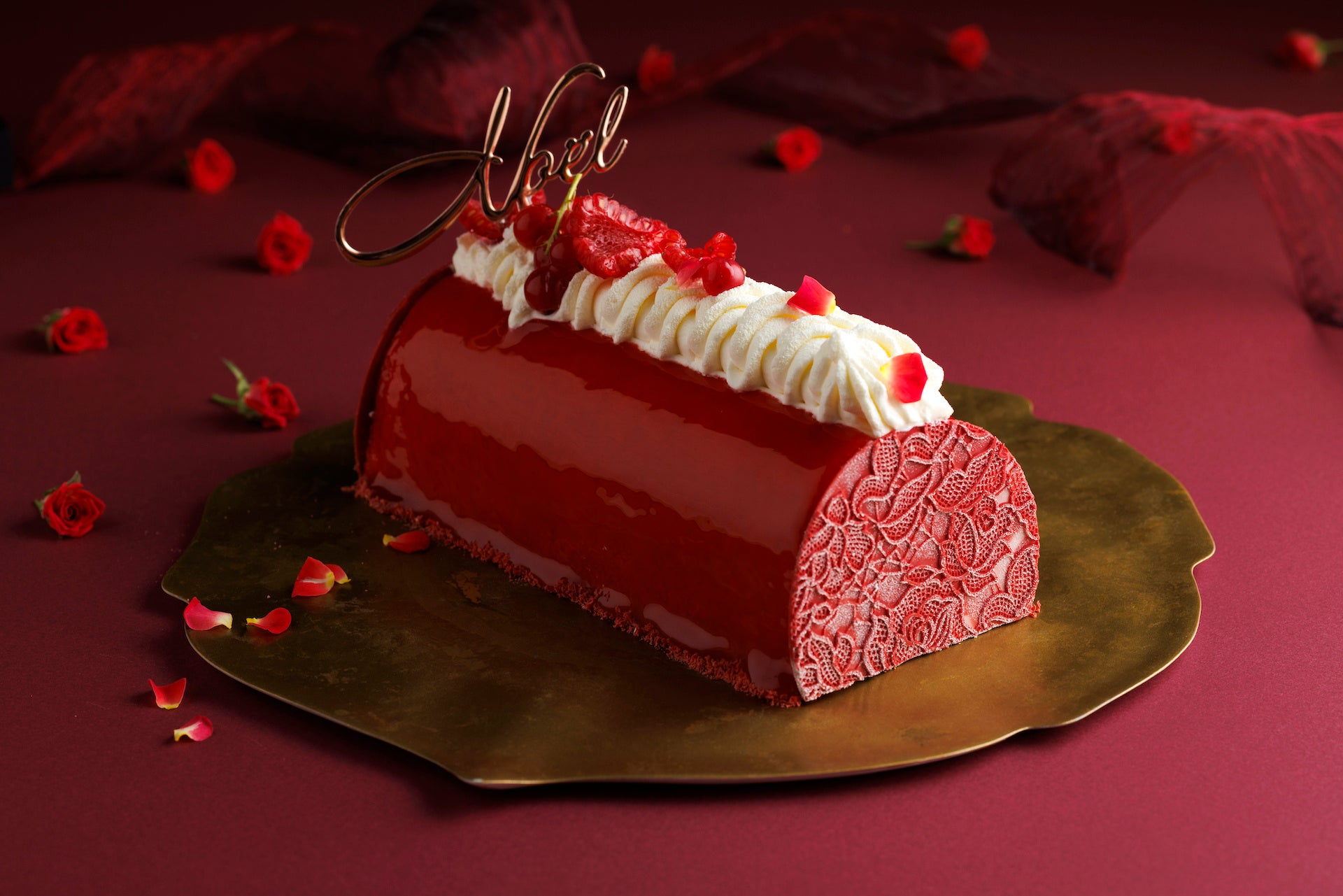 ローズとフランボワーズをとじ込め、上品な雰囲気に仕立てた鮮やかなケーキ。ローズの香りとフランボワーズの甘酸っぱさ、生クリームの調和をお楽しみください。