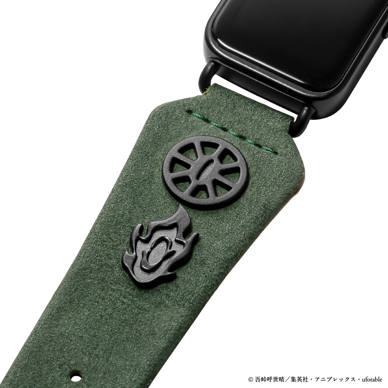 の協力のもと、竈門炭治郎の羽織をイメージした市松模様の西陣織を採用。下部分は落ち着いたグリーンのレザーストラップにポイントとして、竈門炭治郎が使用していた鐔を、さらにその下には煉󠄁獄杏寿郎より受け継いだ鐔を配置しています。ベルト裏には傷がデザインされています。