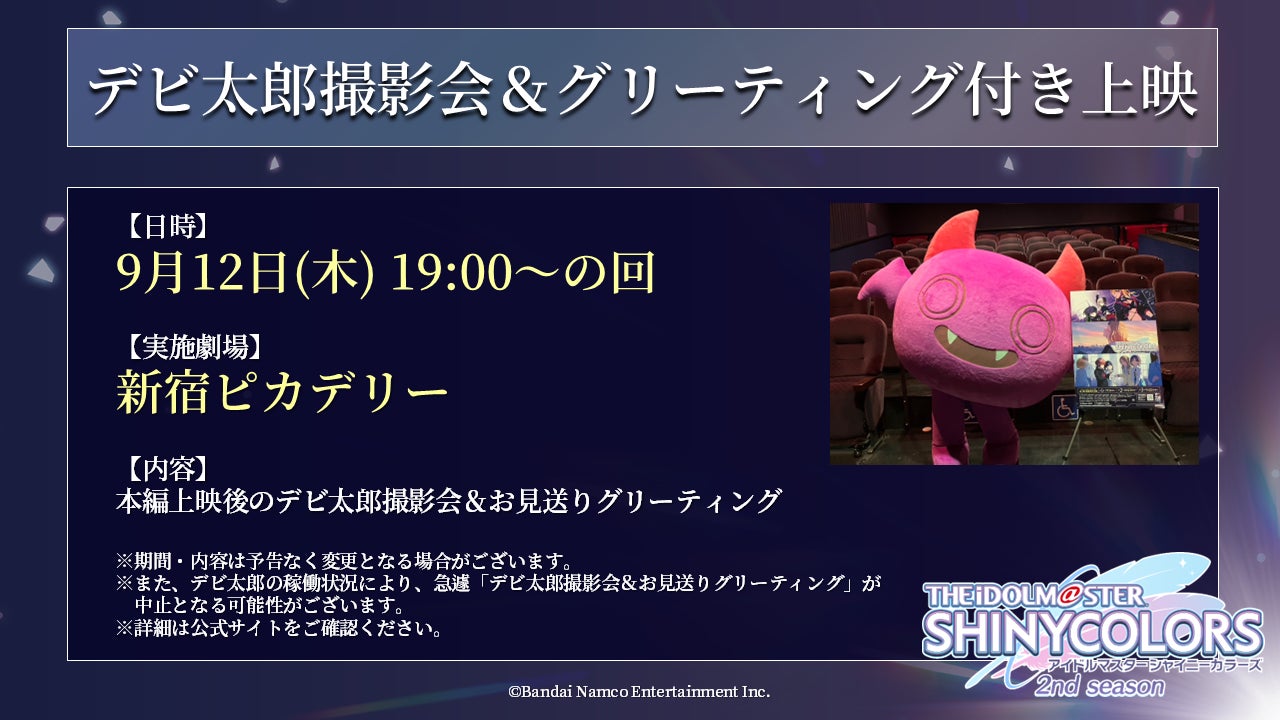 9月12日(木)新宿ピカデリーにて、デビ太郎の撮影会&グリーティング付き上映の実施が決定いたしました!