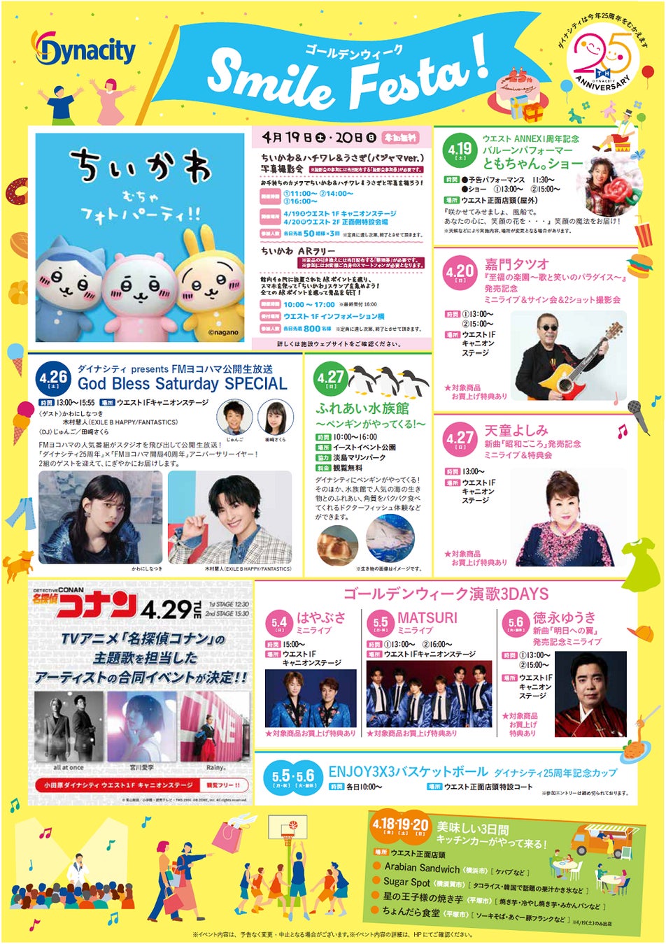 ダイナシティ(小田原)25周年アニバーサリーイヤーがスタート!第一弾はゴールデンウィーク スマイルフェスタを開催
