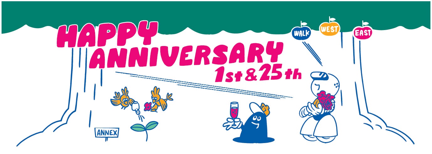 また、4月は昨年オープンしたウエストANNEXの1周年を記念した企画も同時開催!小田原出身のイラストレーターたけうちあつし氏による仮囲いアートや、ANNEXオープン記念公式イメージキャラクター「ダイナくん」の金太郎飴配布など、盛りだくさんの企画でみなさまをお迎えします。
