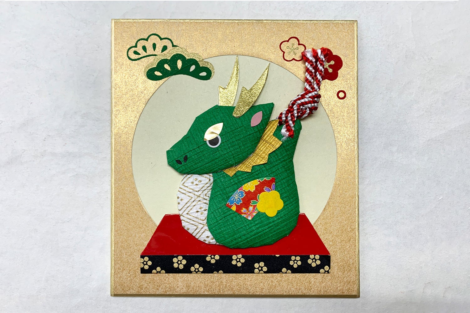 辰の絵柄のミニ色紙を押絵でお作りいただけます。日本伝統の和紙を使用し、2024年の辰年を楽しく迎える新年のお飾りとして、ぜひお持ち帰りください。