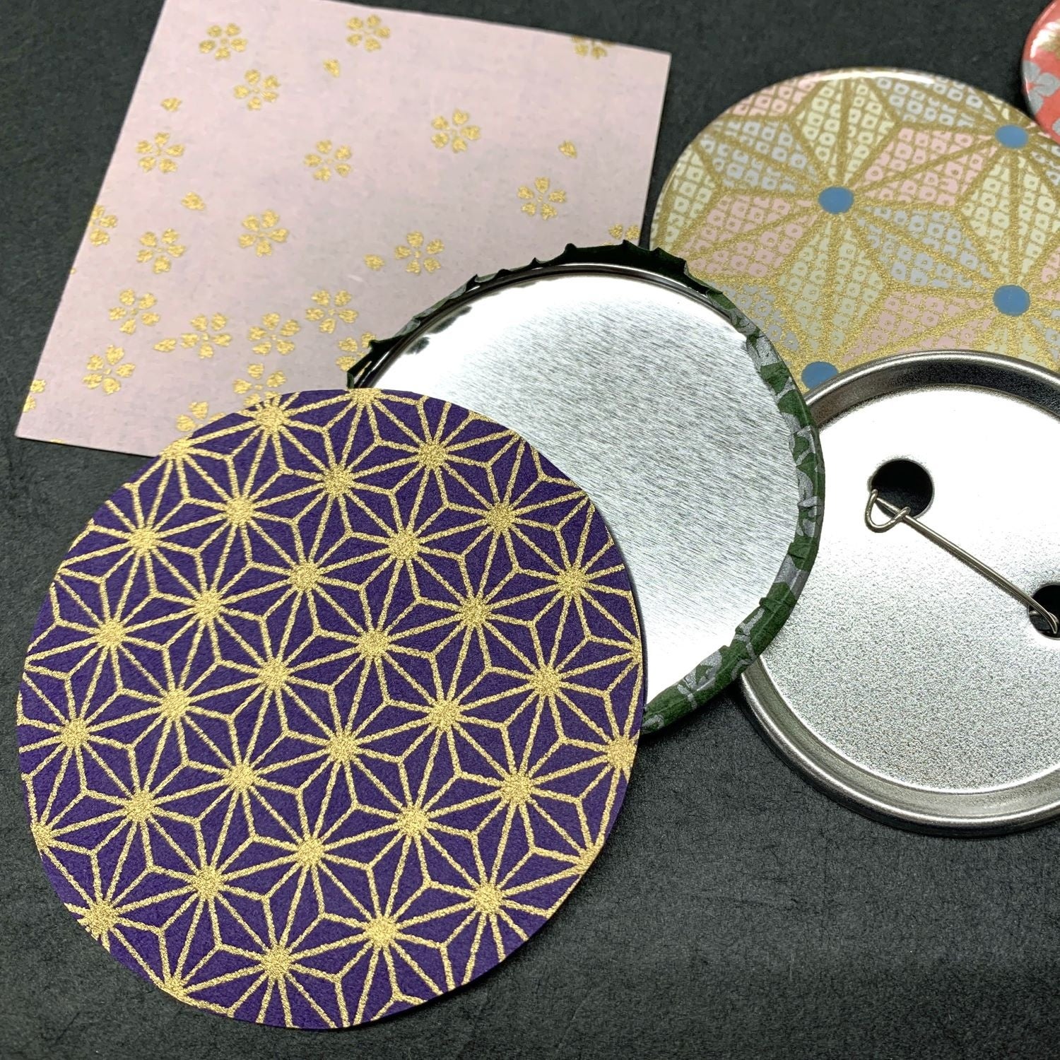 お好きな和紙を組み合わせてオリジナル缶バッジをおつくりいただけます。