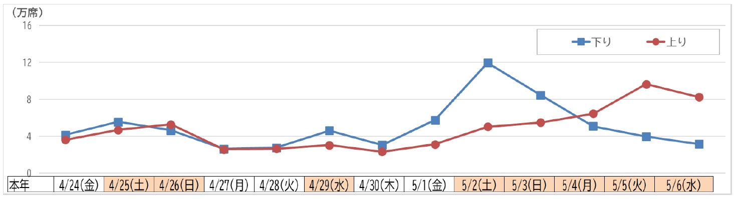 ・下りのピーク日は5月2日(土)で、約12万席のご予約をいただいております。