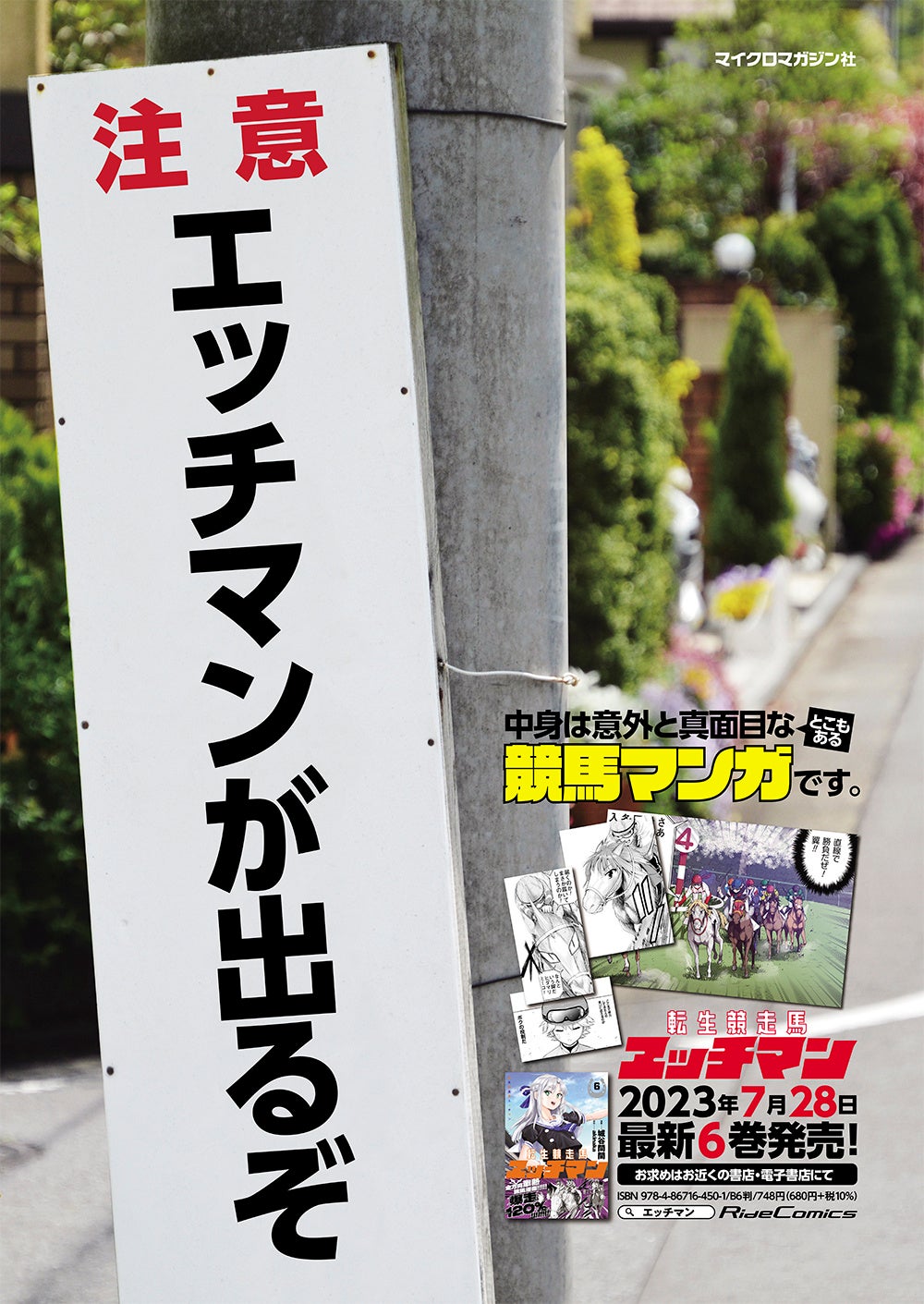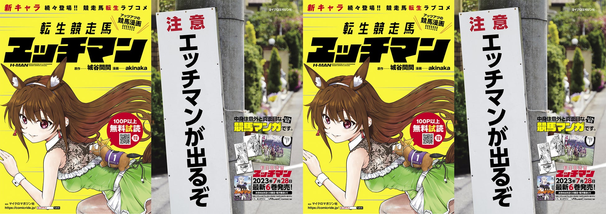 マイクロマガジン社(東京都中央区)は、ライドコミックス『転生競走馬 エッチマン』ポスターを桜木町駅に掲出いたします。