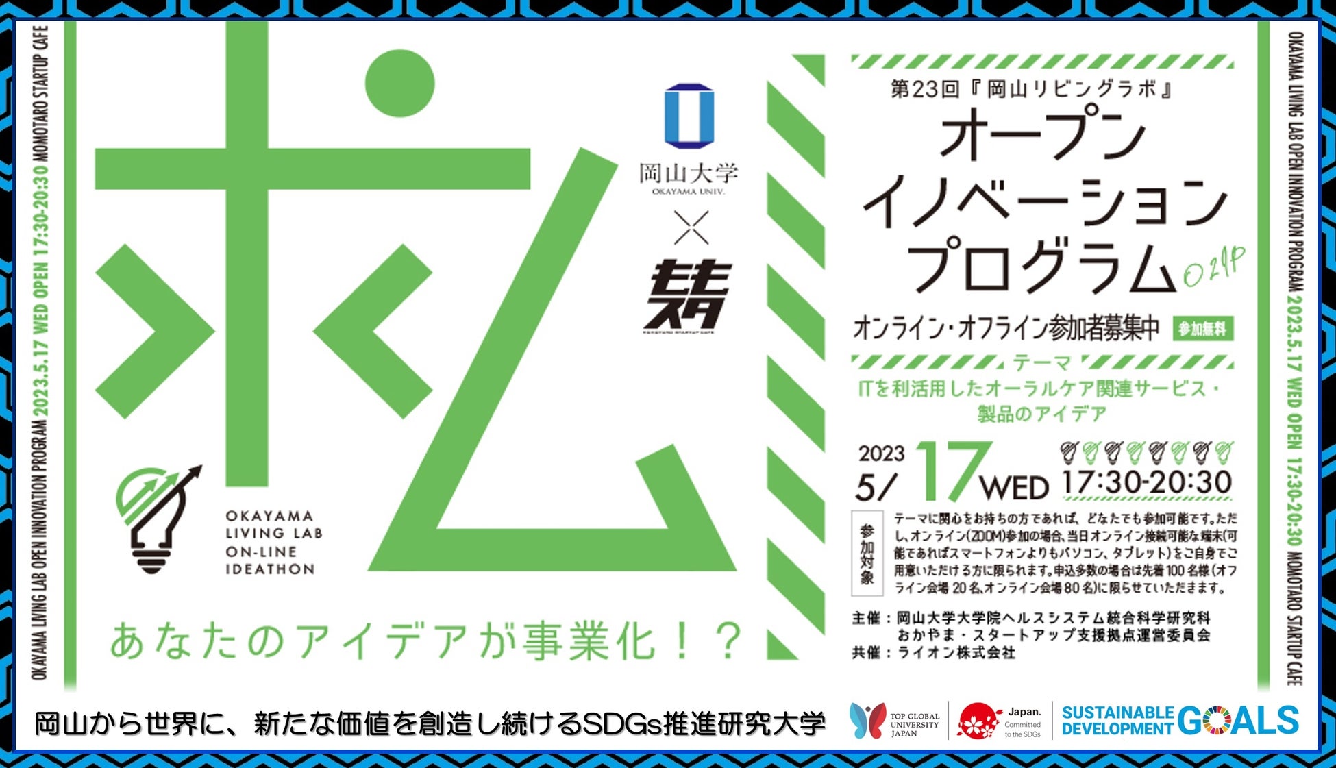 【岡山大学】第23回「岡山リビングラボ」オープンイノベーションプログラム ~ITを利活用したオーラルケア関連サービス・製品のアイデア~〔5/17,水 ハイブリッド〕