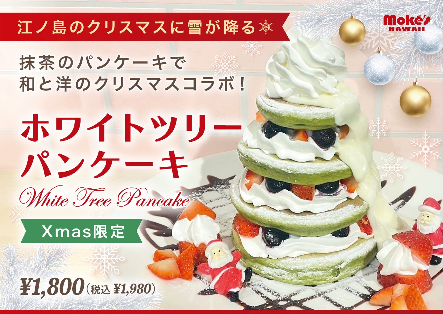 ハワイカイルアに本店を構える「モケス ハワイ」江の島店より、2024年クリスマス限定「ホワイトツリーパンケーキ」を発売開始いたしました。