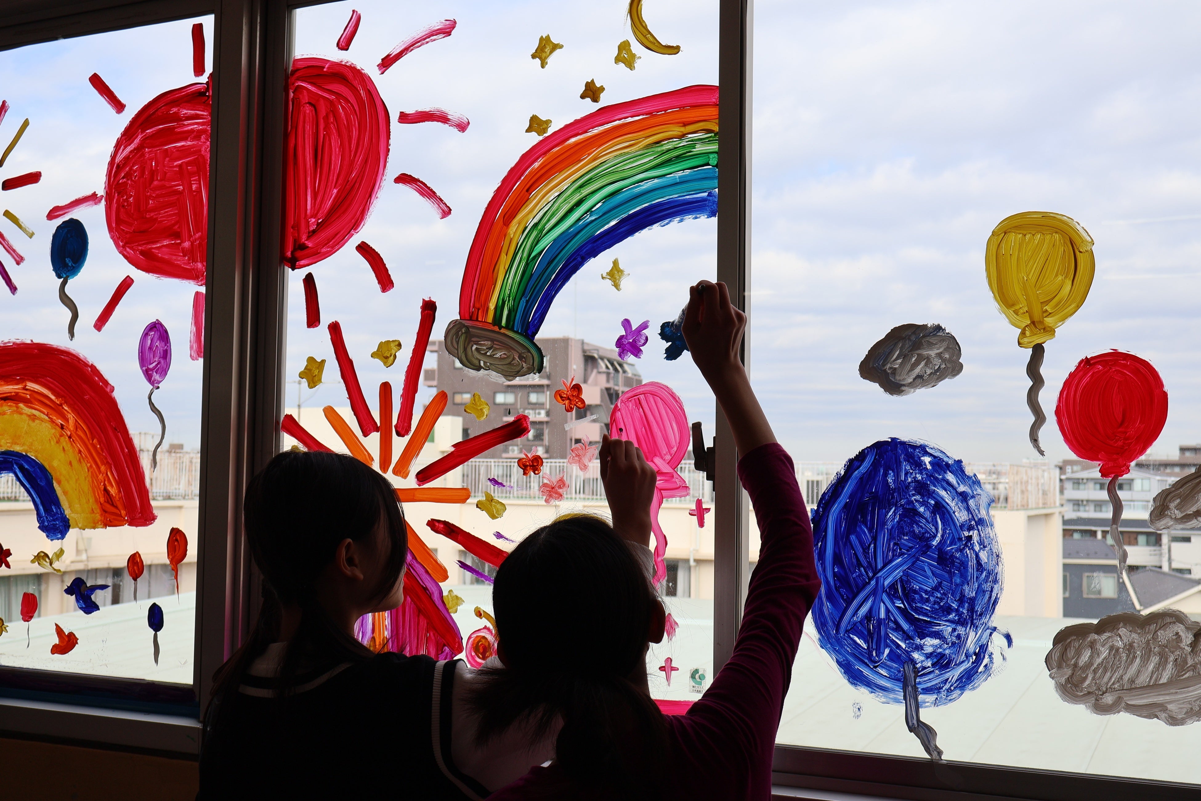 児童が校舎全体をキャンバスとして絵を描き、その様子をキヤノンのカメラで撮影します。ぺんてるによる壁画制作に必要な画材と額の寄贈、キヤノンMJグループによるカメラの貸し出しや大判ポスターの制作・寄贈を通じて、子どもたちの「思い出づくり」を支援しています。