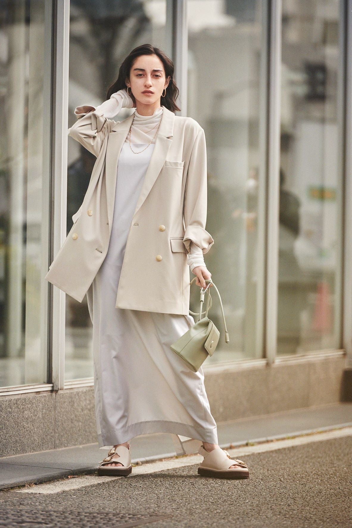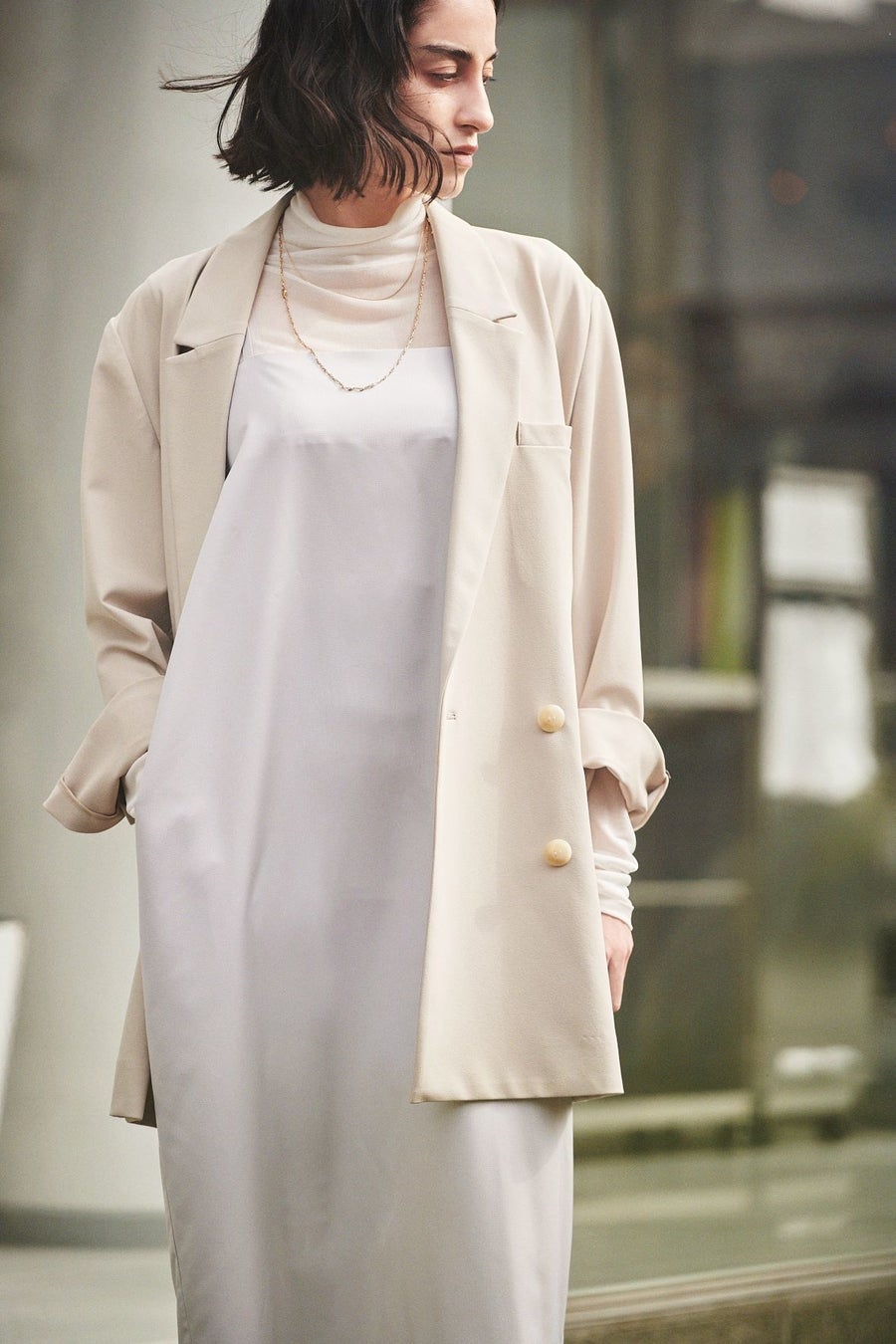 コクーンシルエットがモードな表情をプラスし、emmi ならではのクリアモードなデザインに。