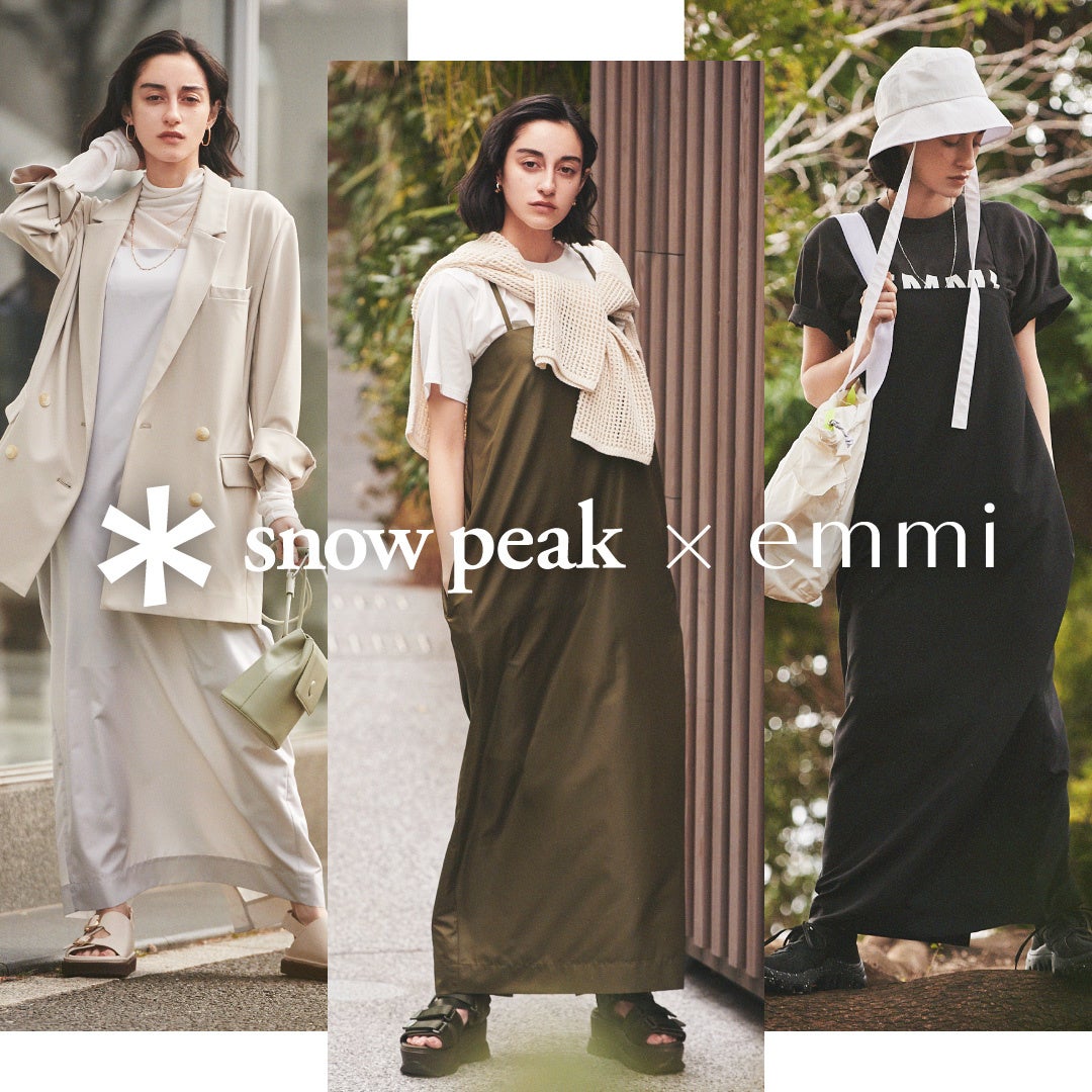 アを⼿掛けるレディースブランド「emmi(エミ)」は4⽉12⽇(火)12:00より、アウトドアブランド「Snow Peak(スノーピーク)」とのコラボレーションウェアのWEB企画を公式オンラインストア、ECデパートメントストアのUSAGI ONLINE(ウサギオンライン)にて公開いたします。(emmi公式ホームページ:http://emmi.jp/ )