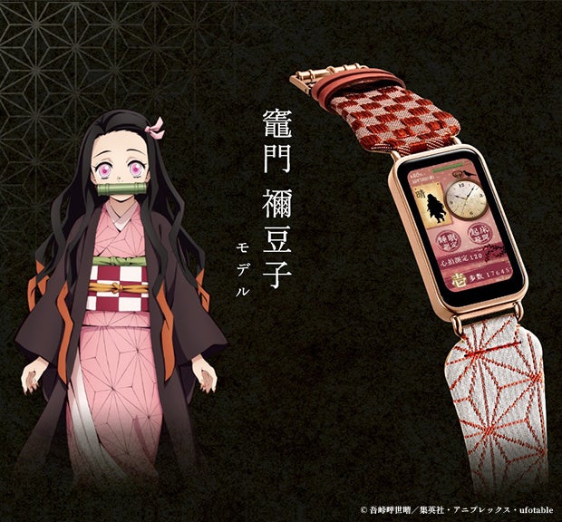 モデルは竈門炭治郎と竈門禰豆子モデルの2種類。各キャラクターの特徴を取り入れデザインされた、本モデルの為だけのオリジナル文字盤を搭載した『鬼滅の刃』スマートウォッチです。