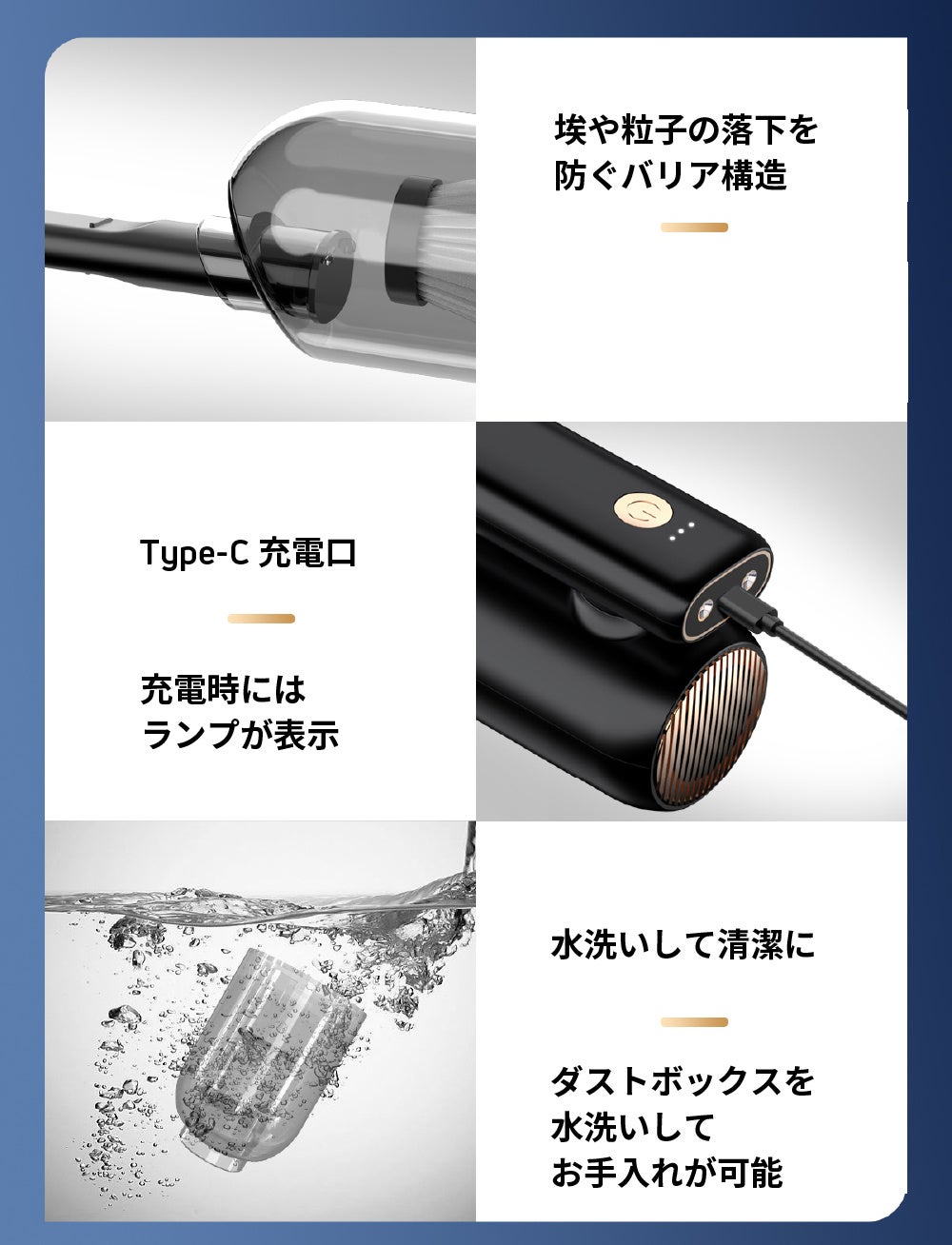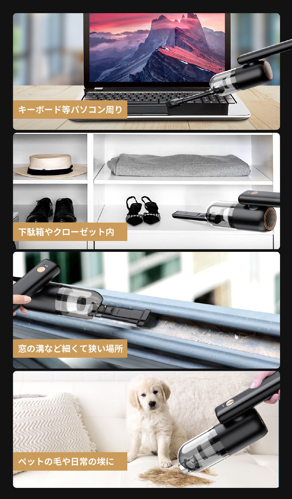 - どこでも使える充電式のハンディクリーナー