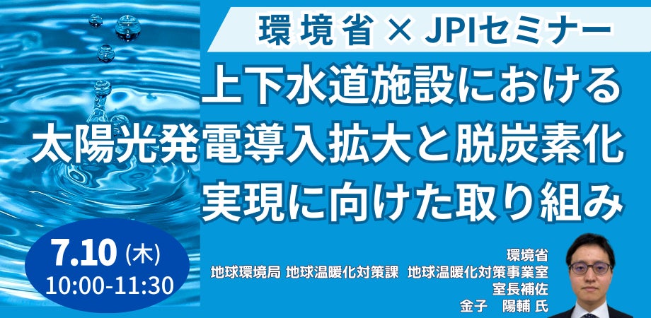 【JPIセミナー】環境省「上下水道施設における太陽光発電導入拡大と脱炭素化実現に向けた取り組み」7月10日(木)開催