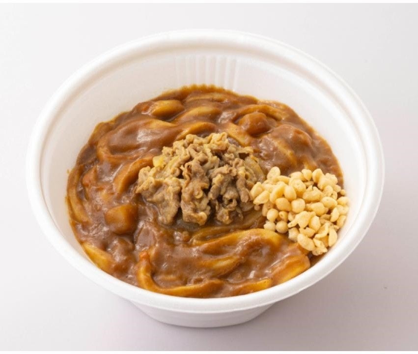 【内容】資さんうどん監修による「カレーぶっかけうどん」です。玉ねぎやフルーツにくわえて、濃縮したトマトソースを隠し味のコクと旨味のある出汁で割らないカレールーが特長です。資さんうどんでもお馴染みの「揚げ玉」を付けました。