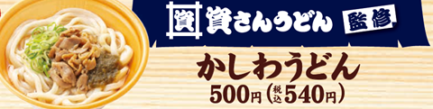 「かしわうどん」は北九州名物のうどんで、甘辛く煮た鶏肉「かしわ」がトッピングされているのが特長です。今回は「かしわ」の量をさらに増量いたしました。