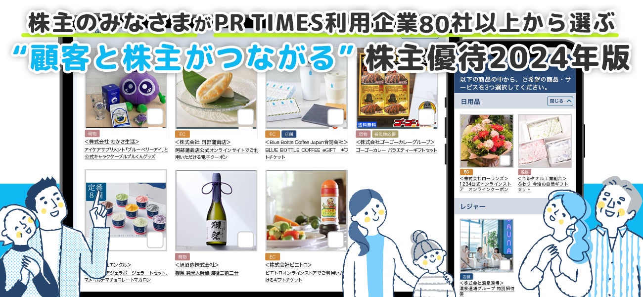 プレスリリース配信サービス「PR TIMES」等を運営する株式会社PR TIMES(東京都港区、代表取締役:山口拓己、東証プライム:3922)は、2024年4月3日(水)、“顧客と株主がつながる”株主優待制度2024年版において、株主の皆様へ進呈する対象の商品・サービスを決定いたしました。