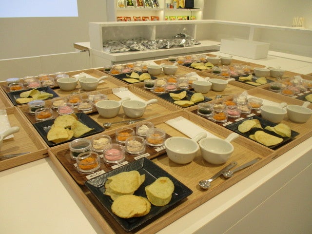 「湖池屋GOGO!ファクトリー」では、フラット、Vカット、ケトル、厚切りなどの異なるカット形状のポテトチップスの食べ比べを楽しめるほか、数種類のフレーバーを組み合わせたオリジナルの味作りを体験いただけます。お好みのデザインやメッセージを加えることができるパッケージを含めて、世界に1つだけのオリジナルポテトチップスを作っていただけます。