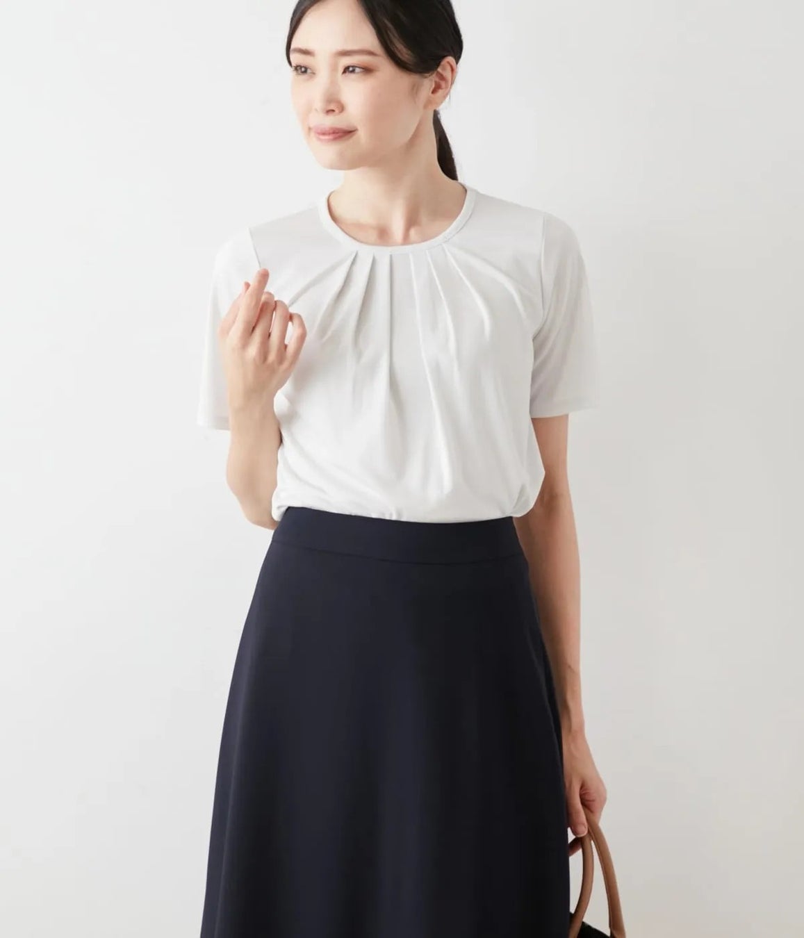 夏に嬉しい接触冷感機能を備えたカットソープルオーバー。胸元にタックを施し、ジャケットを羽織った際もアクセントになるデザインに仕上げました。裾は切り替え仕様で、ボトムにインせずともバランス良く決まります。
