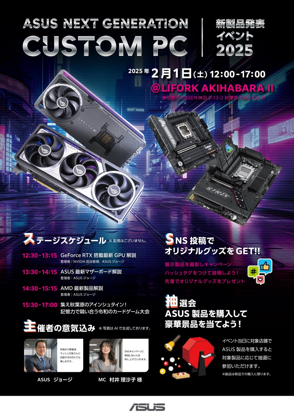 話題の新GPU搭載ビデオカードをはじめとするASUSの新製品を体験できる『ASUS NEXT GENERATION CUSTOM PC 新製品発表イベント 2025』を2月1日秋葉原にて開催