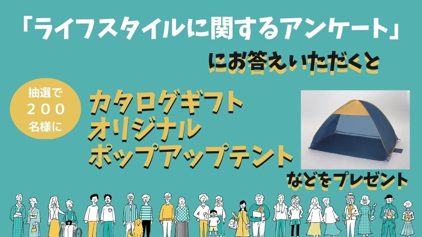 アンケートに回答いただいた方の中から、抽選で200名様に百貨店のカタログギフト、オリジナルポップアップテント、Amazonギフトカード、クオカードなどをプレゼントします。