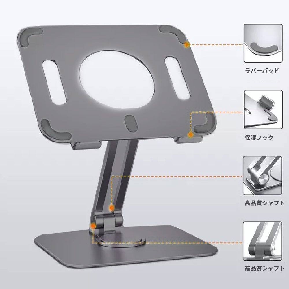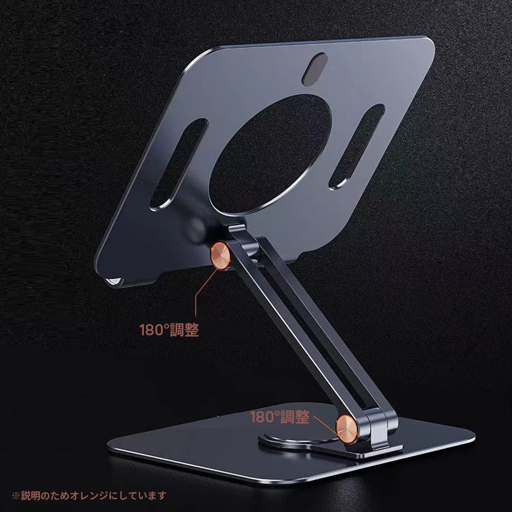 - 2軸で角度調節、本体も360°回転できる便利なスタンド