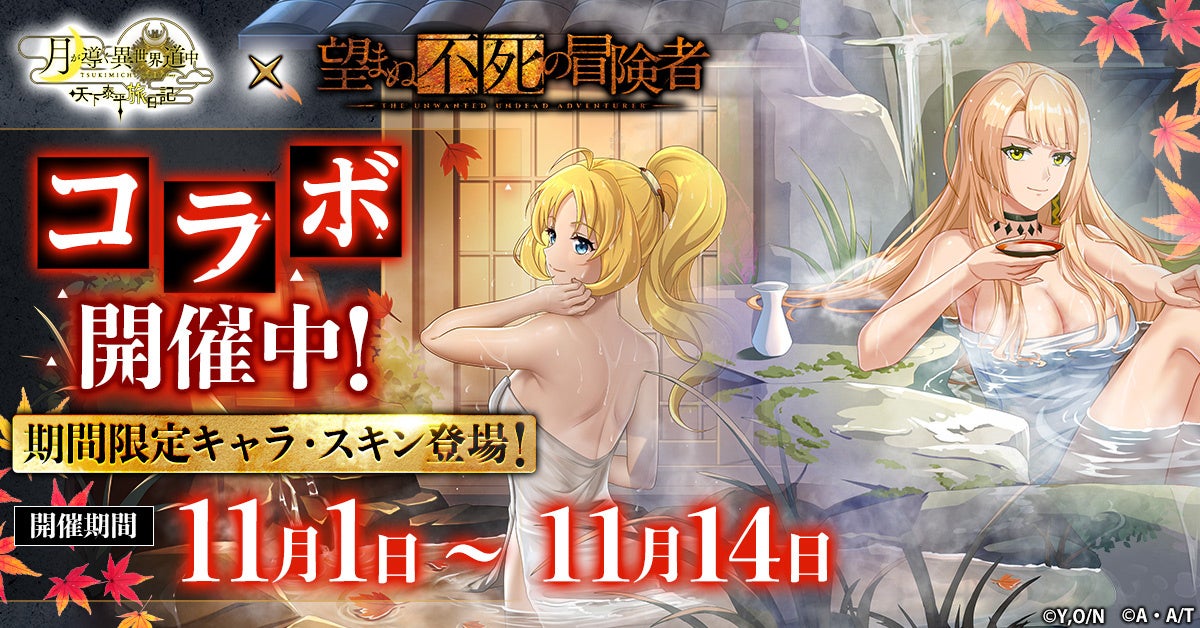 CTW株式会社は、「G123」にて配信中のHTML5ゲーム『月が導く異世界道中 天下泰平旅日記』(以下、ツキミチ旅日記)にて『望まぬ不死の冒険者』との豪華コラボを本日より開催したことをお知らせいたします。