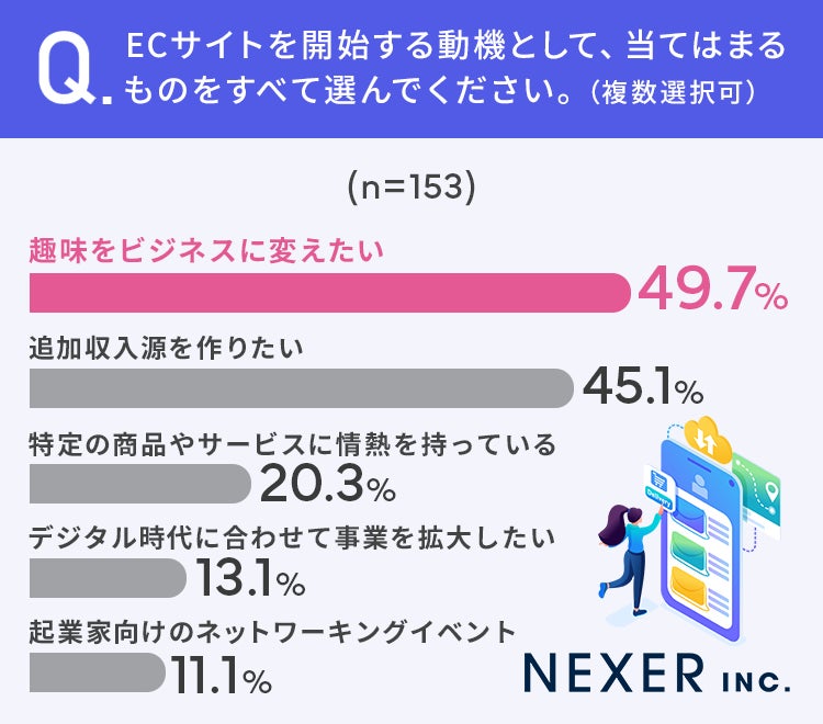 【今後ECサイト運営を始める予定の方に調査】ECサイト開始の動機1位は「趣味をビジネスに変えたい」