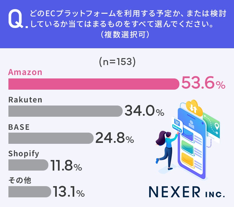 さらにどのECプラットフォームを利用する予定か、または検討しているか当てはまるものをすべて選んでもらいました。