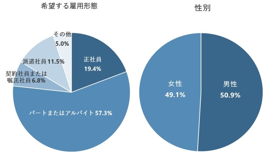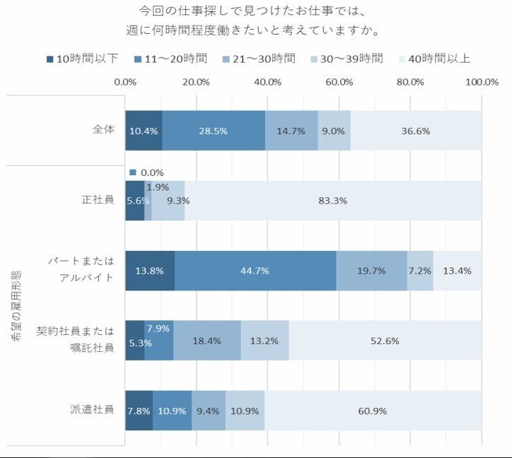 「契約社員または嘱託社員」や「派遣社員」を希望する人では、「40時間以上」を希望する割合が半数以上だった。正社員を希望する人でなくとも、より多くの時間働きたいという声は少なくないようだ。