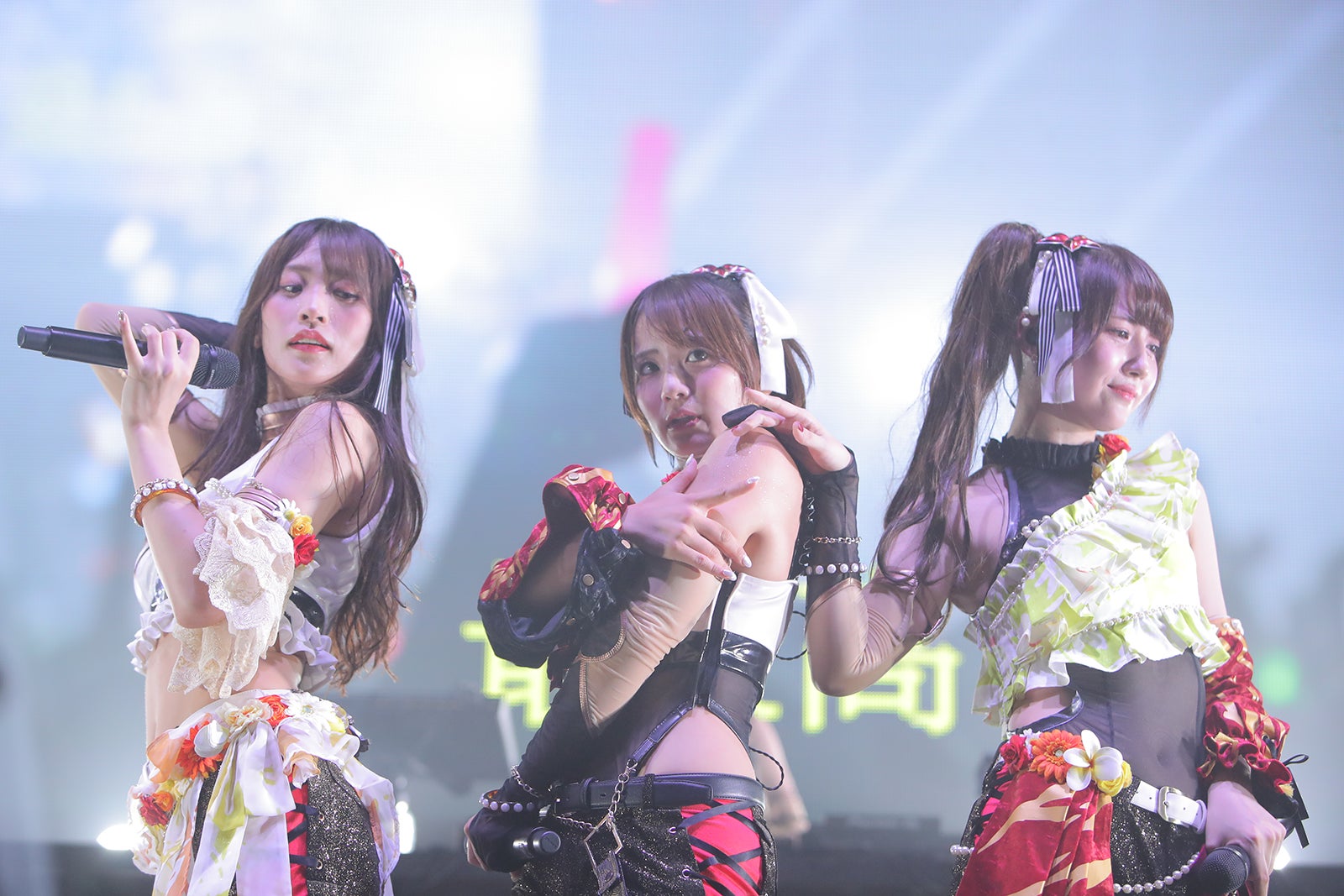 平嶋夏海(瀬戸リカ役)、岡田夢以(水島茉莉花役)、葉月ひまり(日高さおり役)、根岸 愛(松山ダリア役)の4人がつなぐ楽曲と夏の熱気を吹き飛ばす派手なパフォーマンスで会場は大いに盛り上がりました。