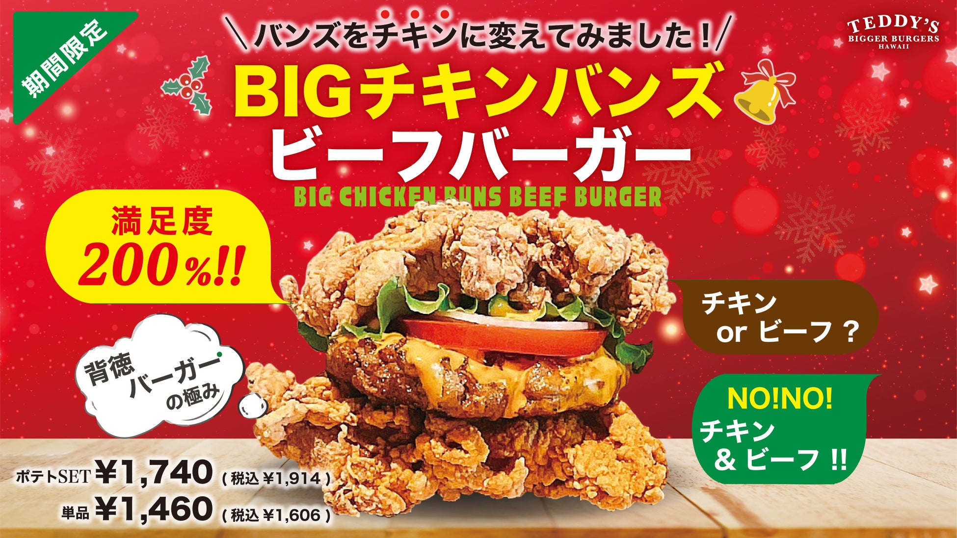 ▶【背徳の極み】ビーフをチキンで挟んだ「BIGチキンバンズビーフバーガー」、ハワイ発「テディーズビガーバーガー」より新登場!