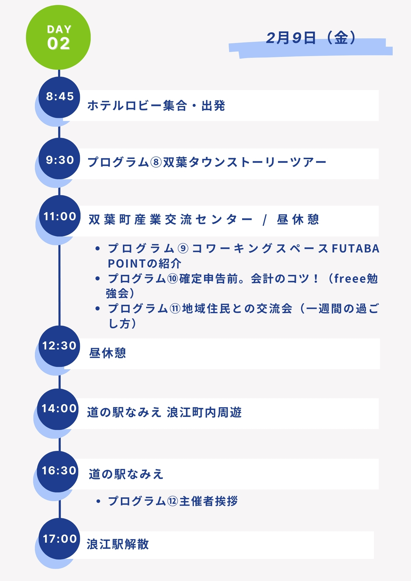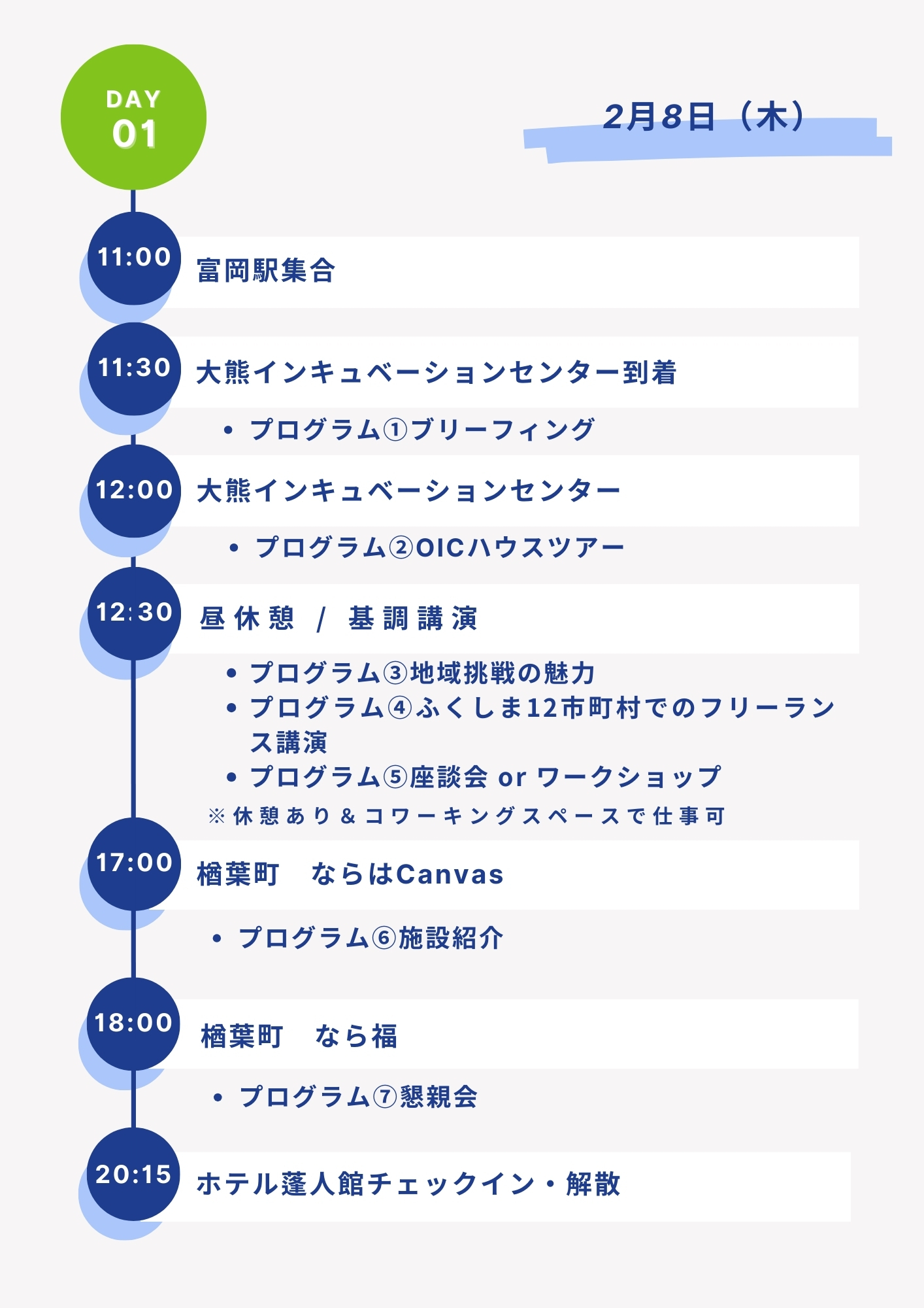 フリー株式会社が(公財)福島イノベーション・コースト構想推進機構が運営するふくしま12市町村※移住支援センター(以下「移住支援センター」)、および一般社団法人双葉郡地域観光研究協会(以下「F-ATRAs」)協力のもと、2月8日(木)~9日(金)に行うフリーランス事業者向けの移住体験ツアー「まだ見ぬ明日と出会う旅 福島移住体験ツアー by freee」について参加者の二次募集を開始いたします。