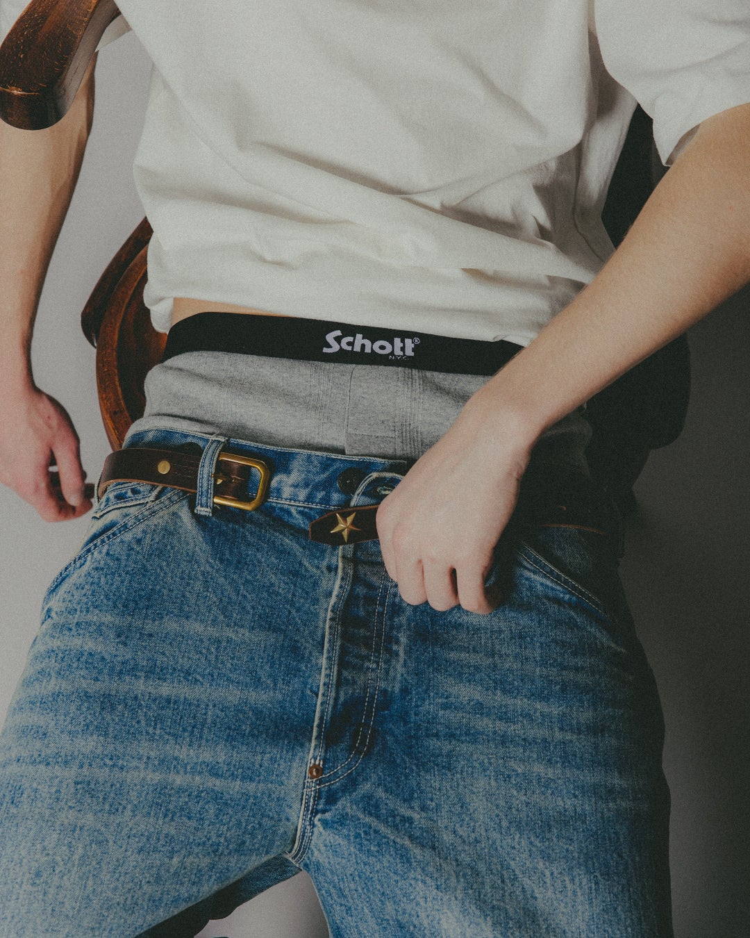 今回採用した7ozのしっかりとした生地感は、タフさと安心感のある着用感を実現し、日常使いに最適な仕上がりです。独自の針抜き構造によって生まれる縦方向の編み模様が高い伸縮性を備え、身体のラインに自然にフィットしながらも締め付け感の少ない快適な着心地を提供します。さらに、コットン100%ならではのやわらかな肌触りと優れた吸水性を備え、日常使いに最適。「Miller」の普遍的なものづくりに、「Schott」らしい無骨で都会的なエッセンスを落とし込んだ、両ブランドの魅力が融合したコラボレーションモデルです。