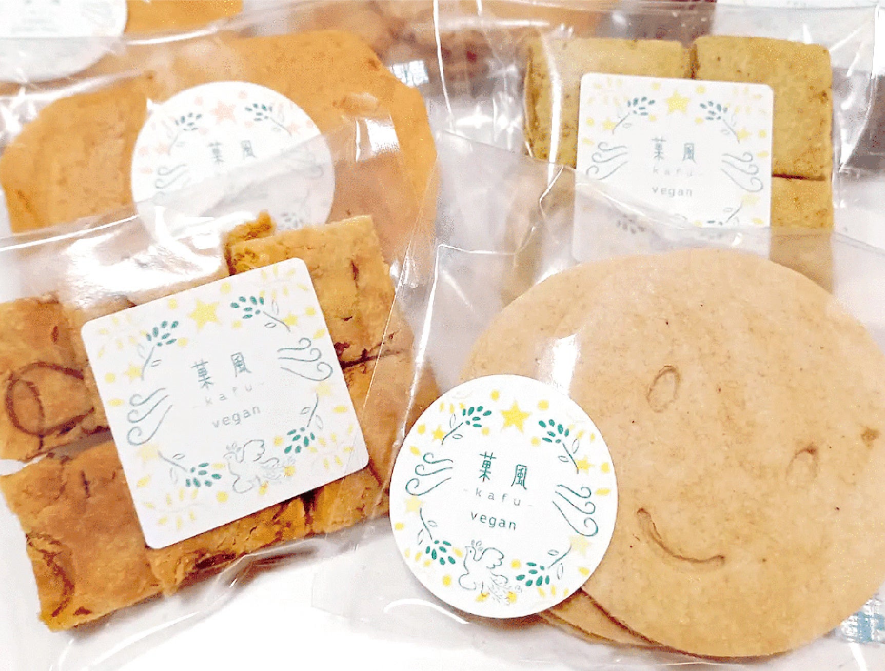 お菓子工房。菜種油やメープルシロップなど、身体が喜ぶ素材を使用した、手作りのヴィーガンクッキーなどを販売します。