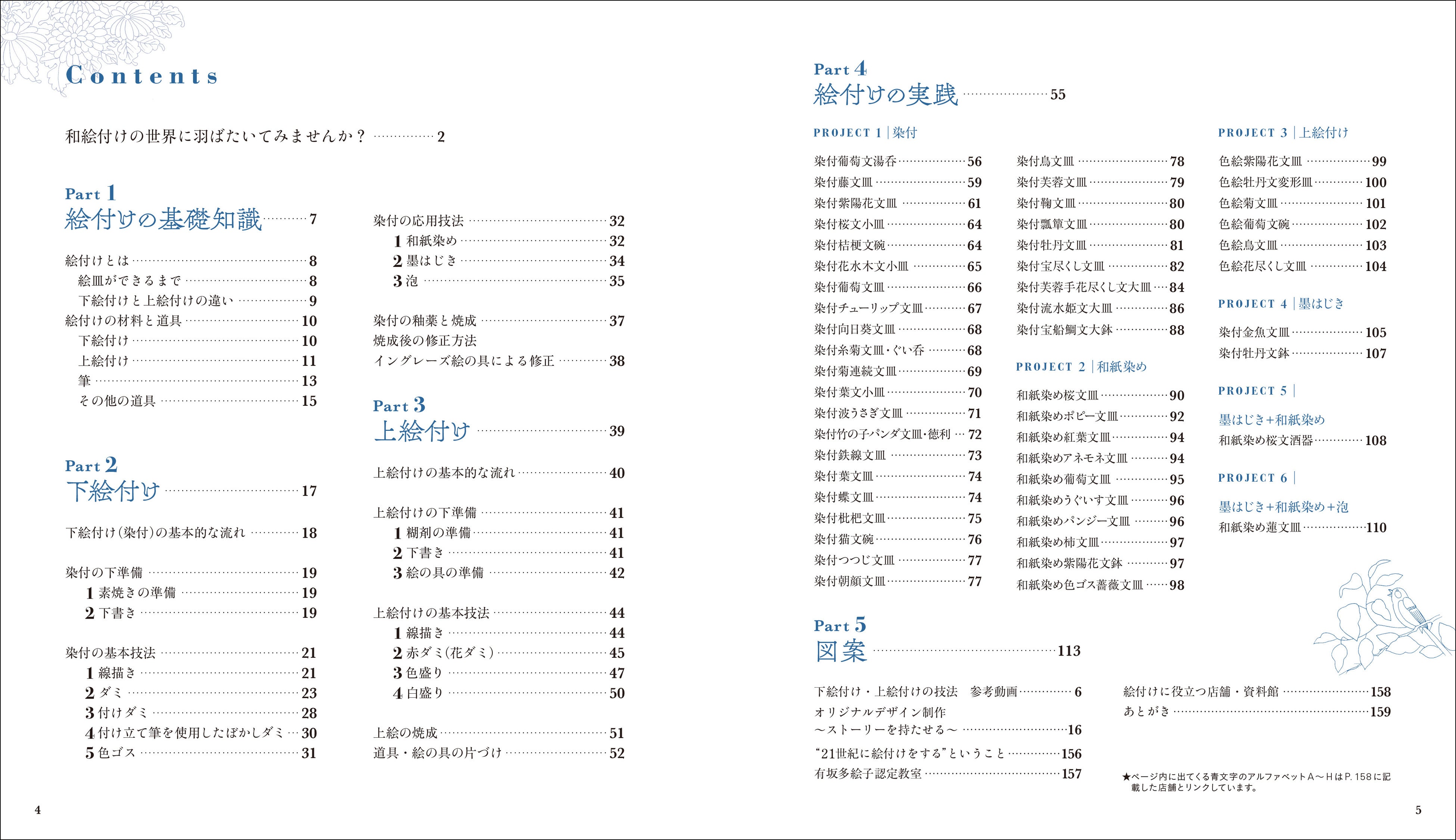下絵付け(染付)から上絵付け、和紙染めなどを、下準備から基本的な技法、よくある失敗例などを豊富な写真と丁寧な説明で解説します。
