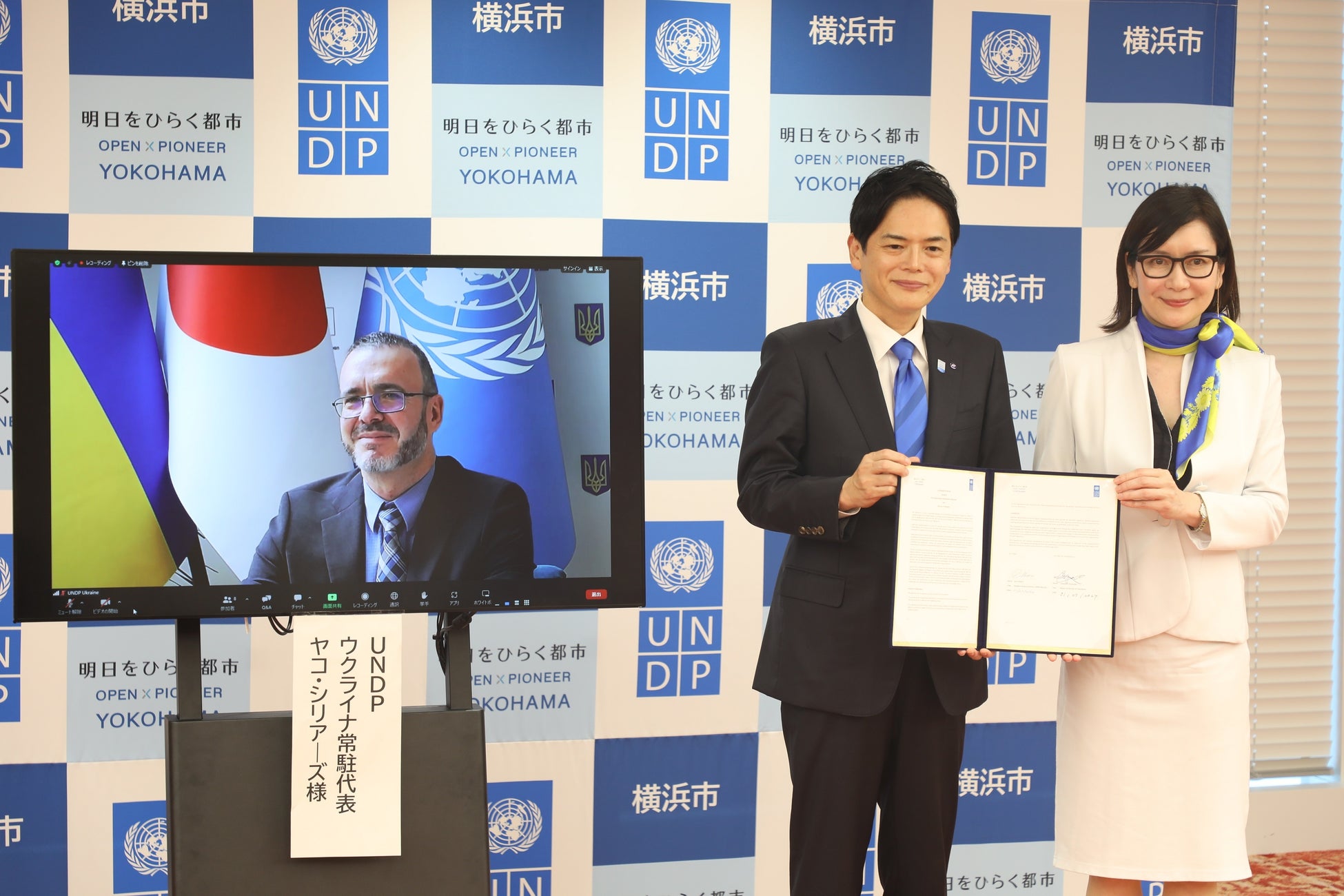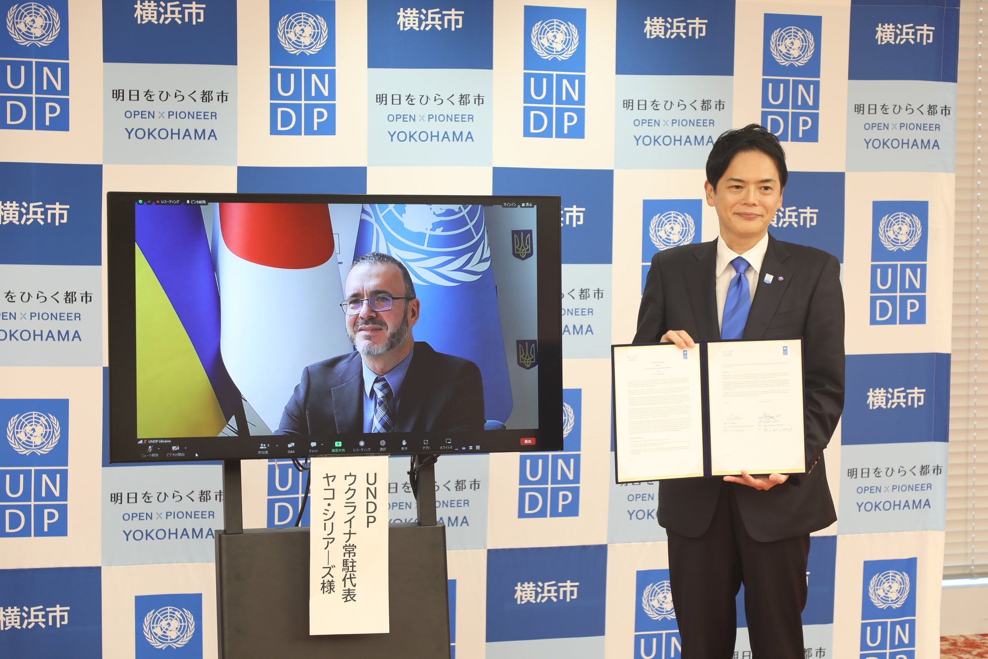 令和6年7月1日(月)に、横浜市と、ウクライナの復興に向けた支援において豊富な実績を有するUNDPは、オデーサ市を中心としたウクライナの復興支援における連携のための合意文書を締結し、共同発表しました。