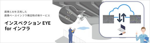「インスペクション EYE for インフラ Cloud Edition」は、インフラ構造物の画像をアップロードするだけで、AIを活用したひび割れ、エフロレッセンス、鉄筋の露出・腐食など、さまざまな変状検知をクラウド上で実施できるサービスです。結果はダウンロードして点検調書の作成や記録管理に活用でき、現場業務の省力化や点検品質の向上にも貢献します。なお、本ソリューションは、デジタル庁「目視等による施工・経年劣化・安全措置対策状況等確認のデジタル化を実現する製品・サービス」に登録されています。