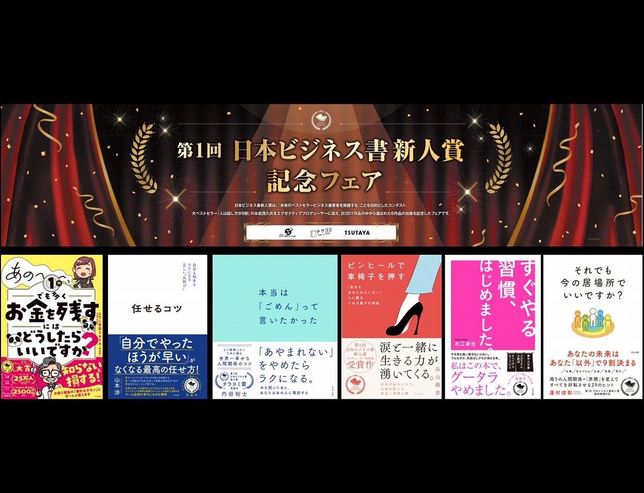 この発売を記念して、7月10日(月)より『第1回 日本ビジネス書 新人賞 記念フェア』を、全国約370店舗のTSUTAYA/蔦屋書店(一部店舗を除く)の書籍売り場にてコーナー展開をするとともに、全国の書店および電子書籍にて展開してまいります。
