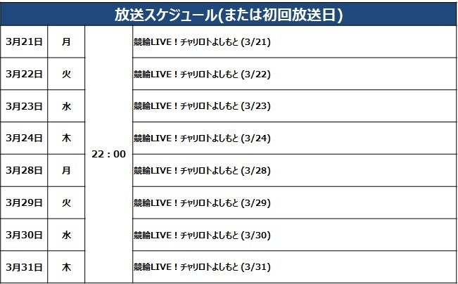 競輪・オートレース車券販売サイト「チャリロト」を運営する株式会社チャリ・ロト(本社:東京都品川区、代表取締役:上田博雄)は、2022年3月21日よりBSよしもとにおいてミッドナイト競輪関連番組の放送を開始します。