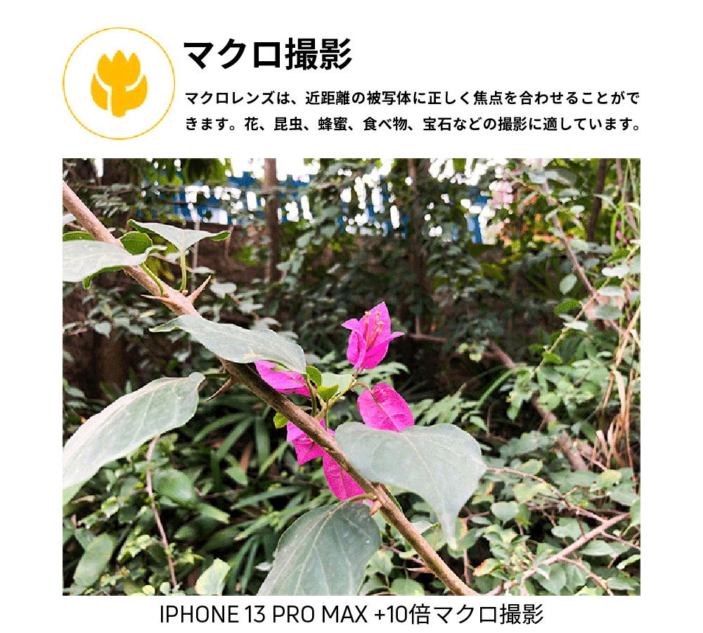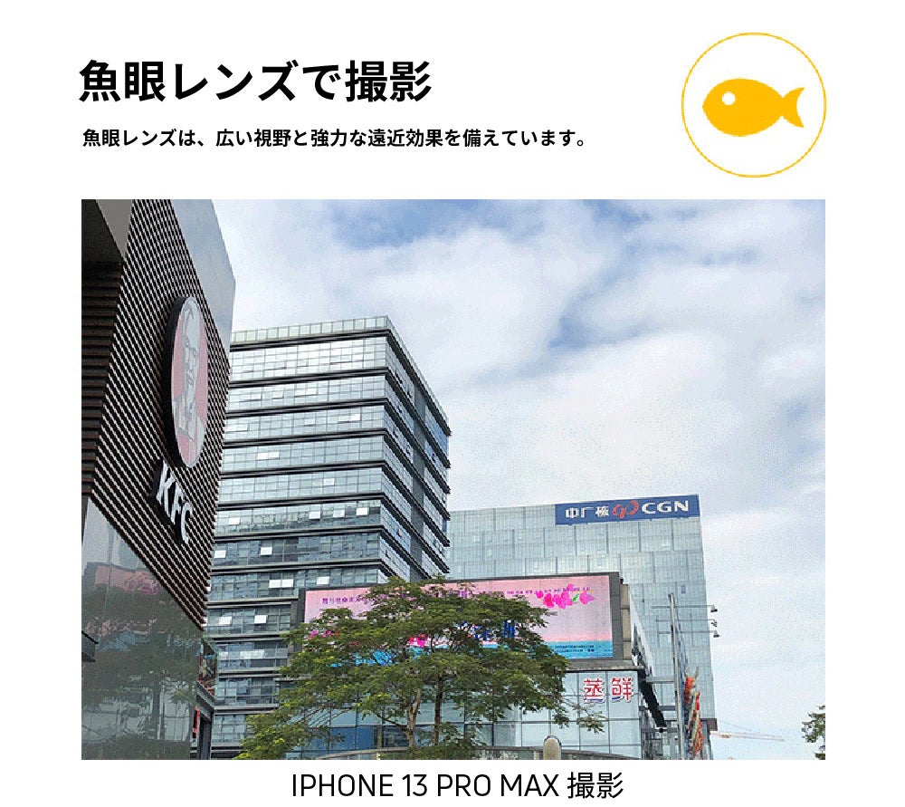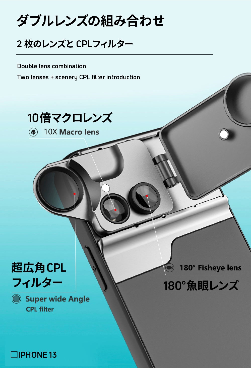iPhone 13シリーズ用のぞれぞれに、マクロレンズ、広角レンズ、魚眼レンズ、超広角CPLフィルターを搭載しています。