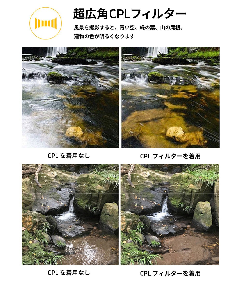 ● マクロレンズ、広角レンズ、魚眼レンズ、超広角CPLフィルターを搭載(モデルによってレンズ数とキットの構成が異なります)