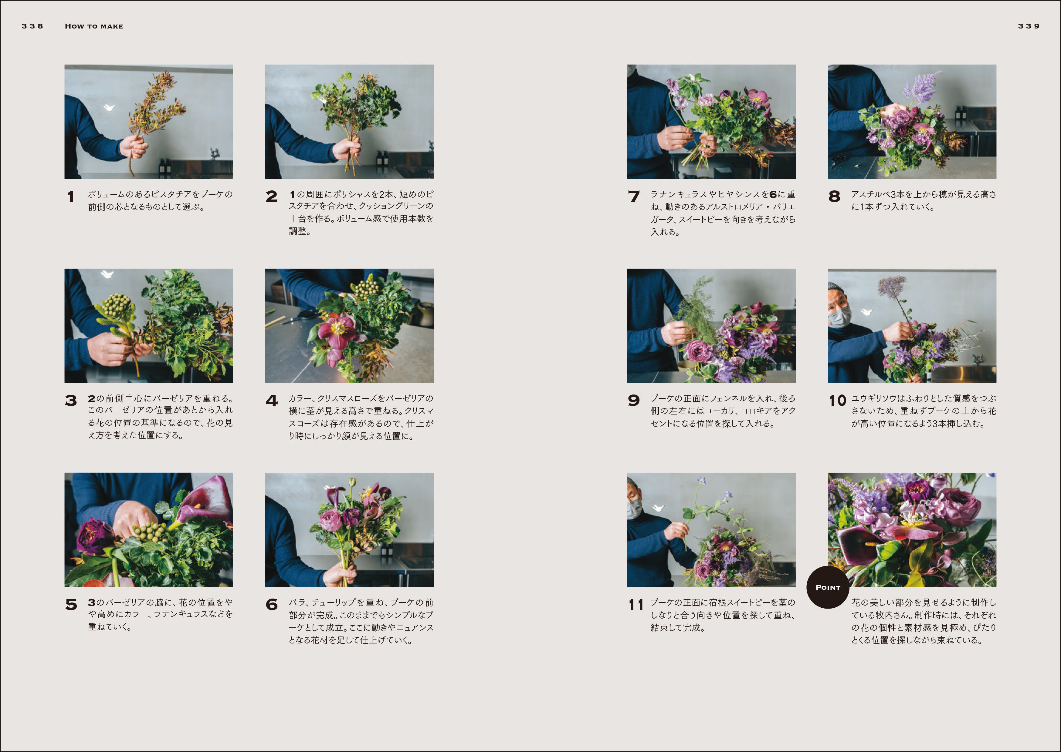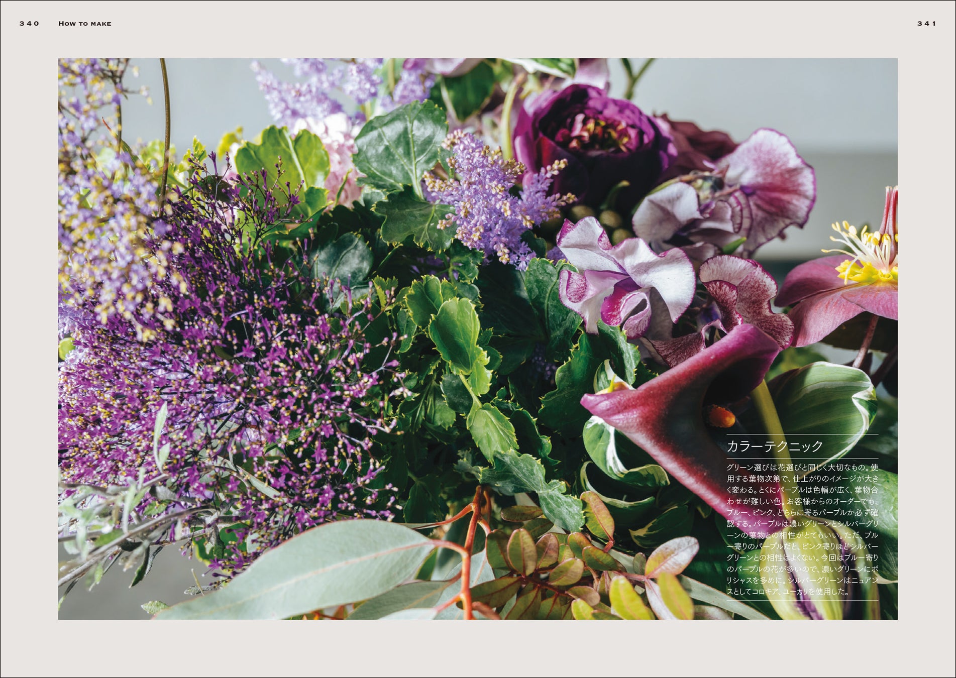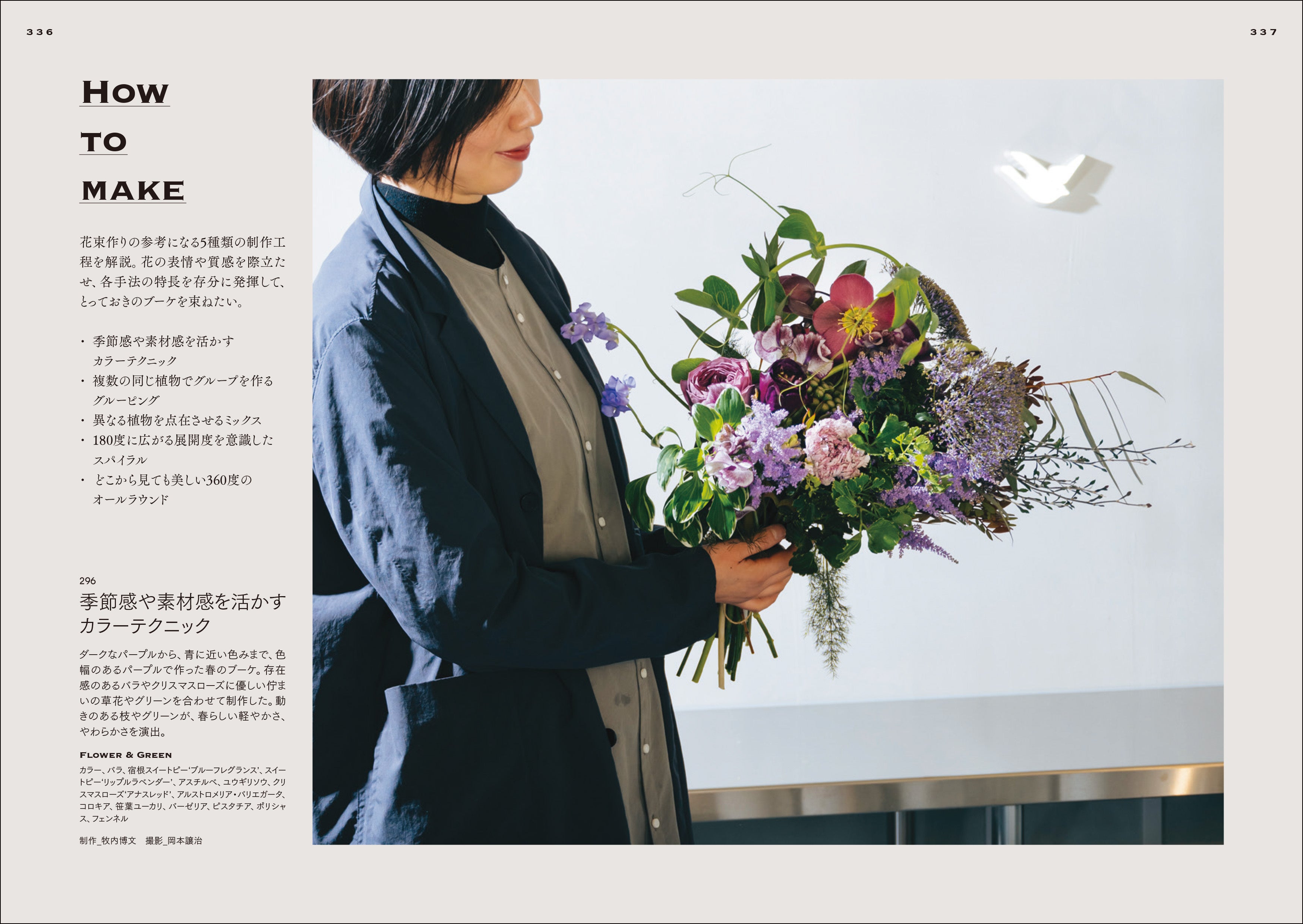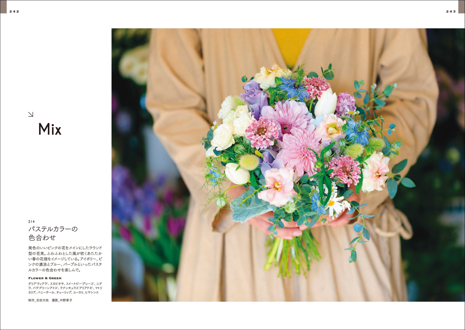 本書では、プロのフローリスト、フラワーデザイナーが制作した花束の作例を300点掲載。