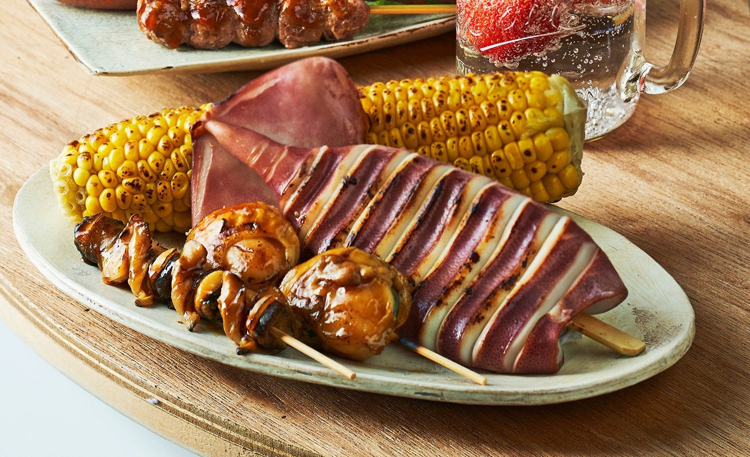 とうきび焼(1本)540円、いか姿焼(1串)901円、つぶ貝串焼(1串)601円、ホタテ串焼(1串)751円