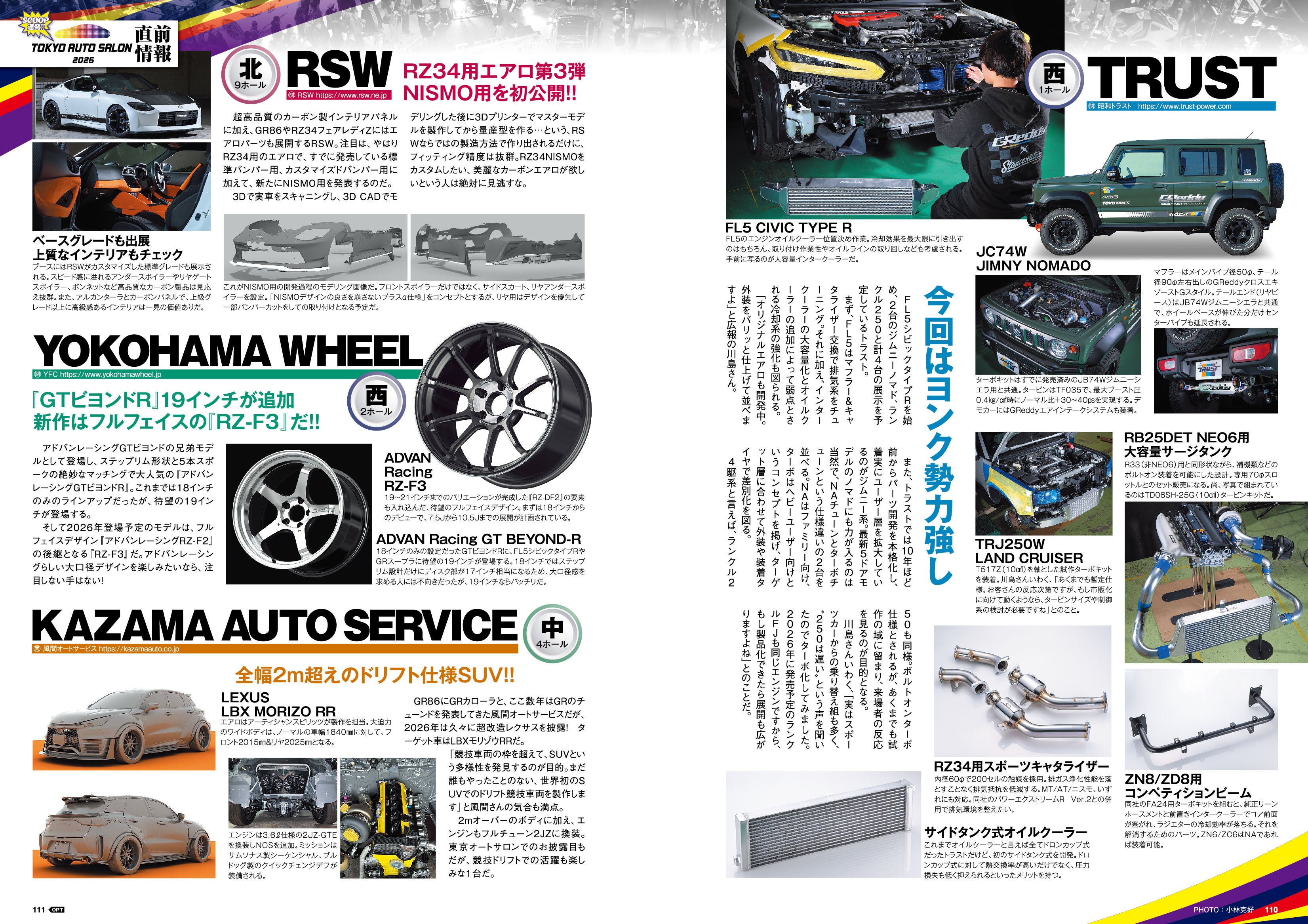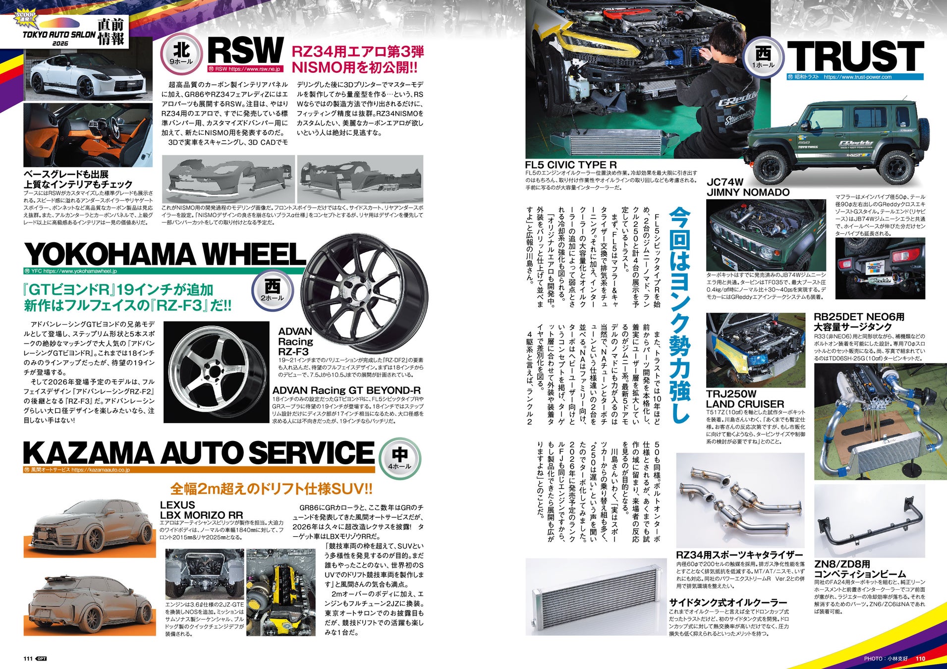 第二特集では、いよいよ開催が迫ってきた『東京オートサロン2026』の直前情報を展開。出展マシンや出展ブースの見所をお届けしている。もちろん、OPTION限定ステッカーの引換券つきだ。